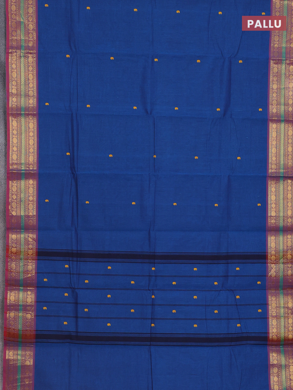 Chettinad cotton saree cs blue and maroon with thread woven buttas and zari woven border