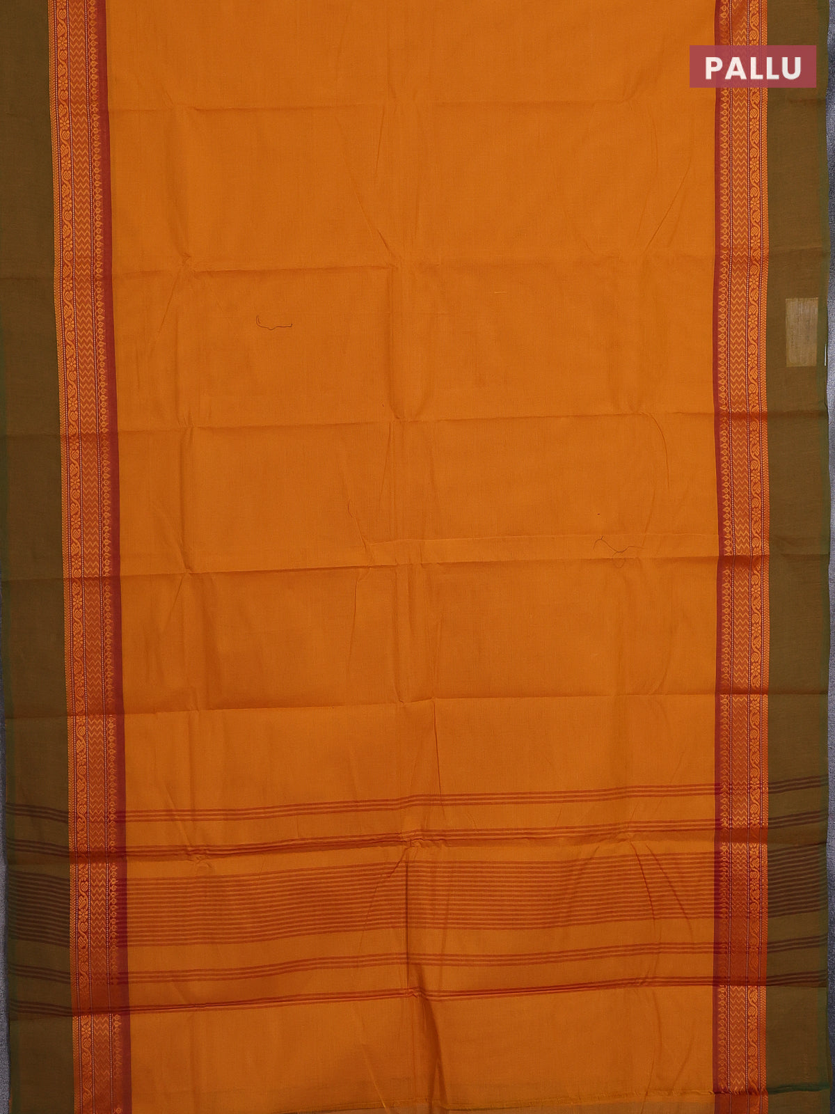 Chettinad cotton saree mustard yellow and mustard green with plain body and thread woven simple border