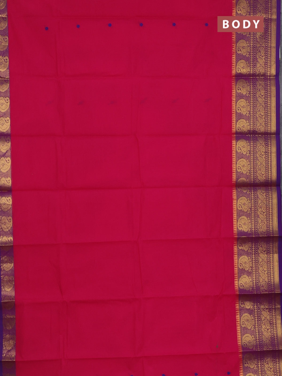 Chettinad cotton saree pink and purple with thread woven buttas and zari woven border