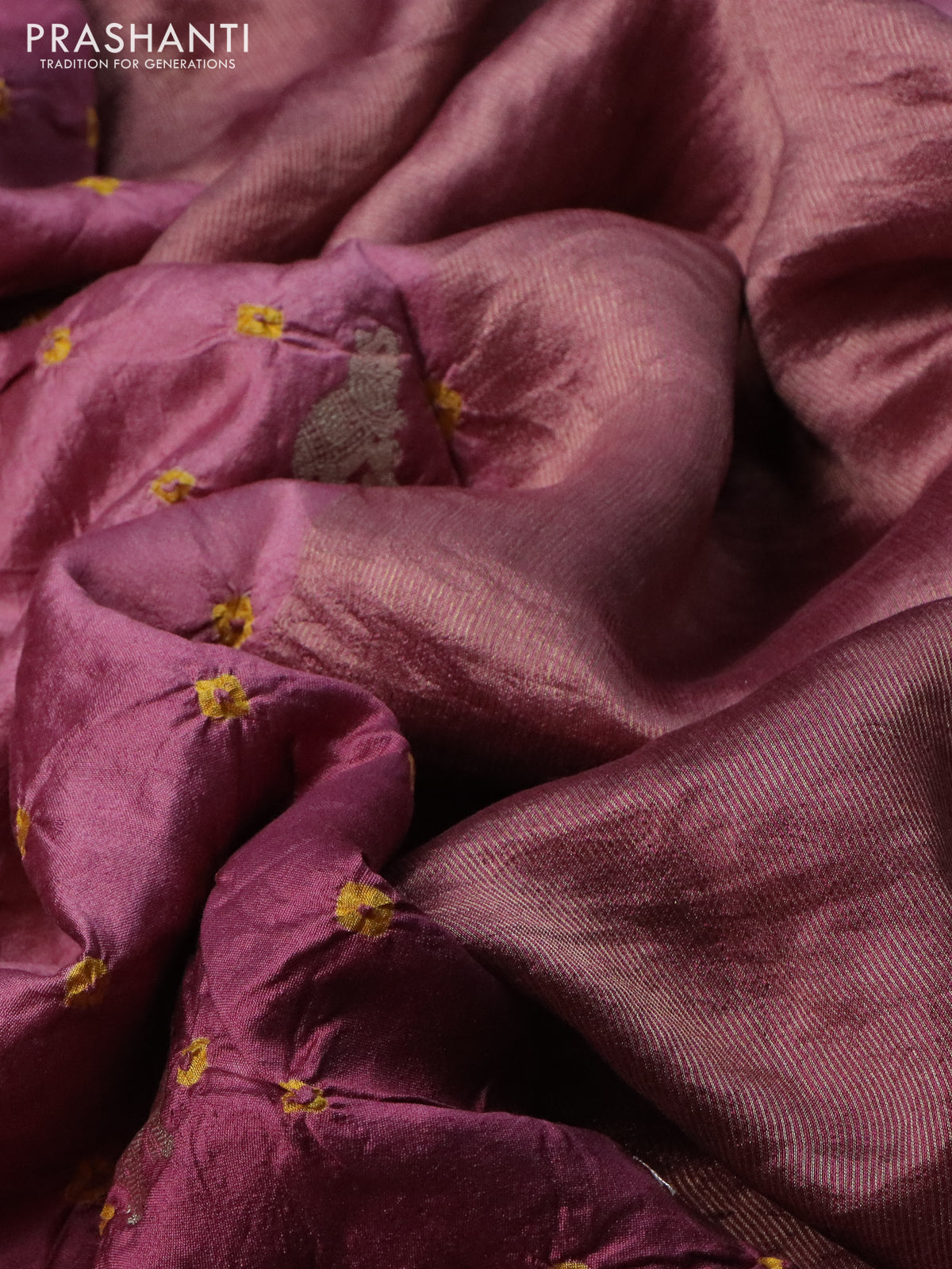 Chiniya silk saree mauve pink with allover zari buttas & bandhini prints in borderless style
