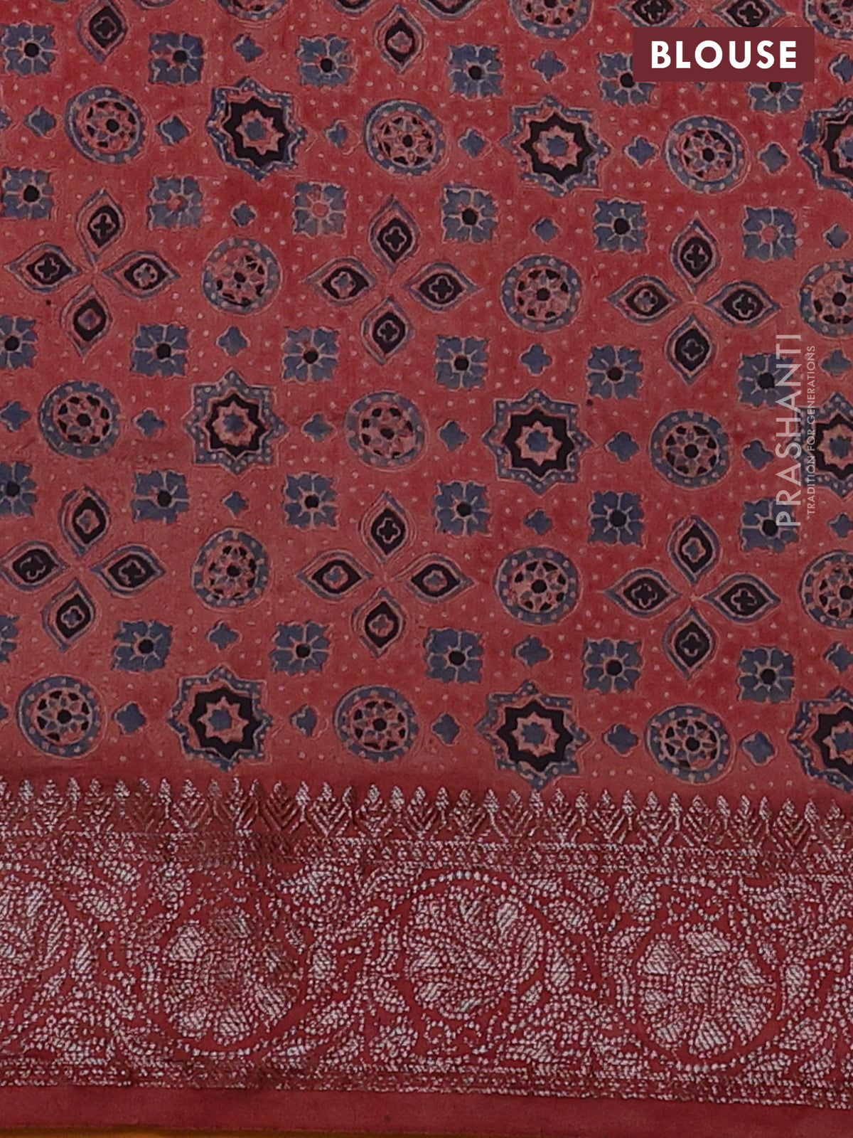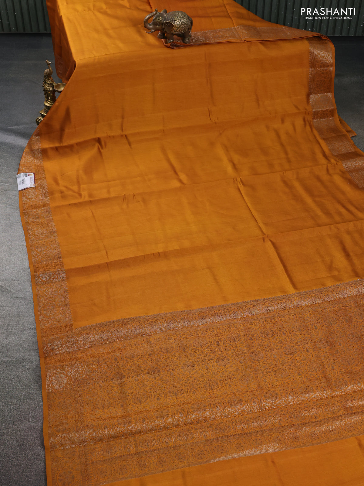 Chiniya silk saree mustard yellow and maroon with plain body and woven border