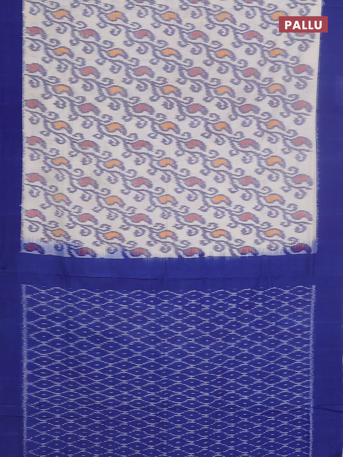 Ikat cotton saree off white and blue with allover ikat weaves and simple border