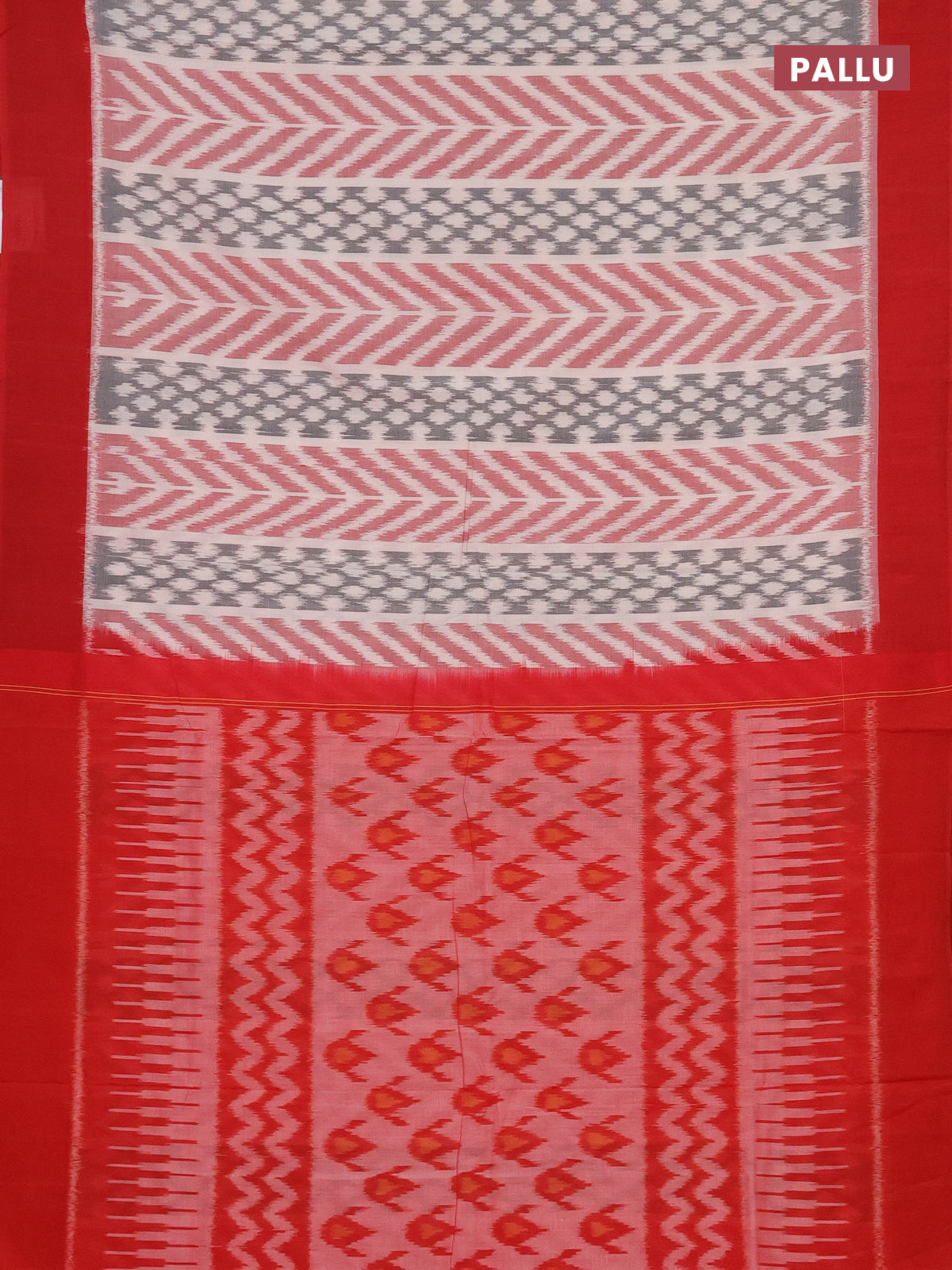 Ikat cotton saree off white and red with allover ikat weaves and simple border