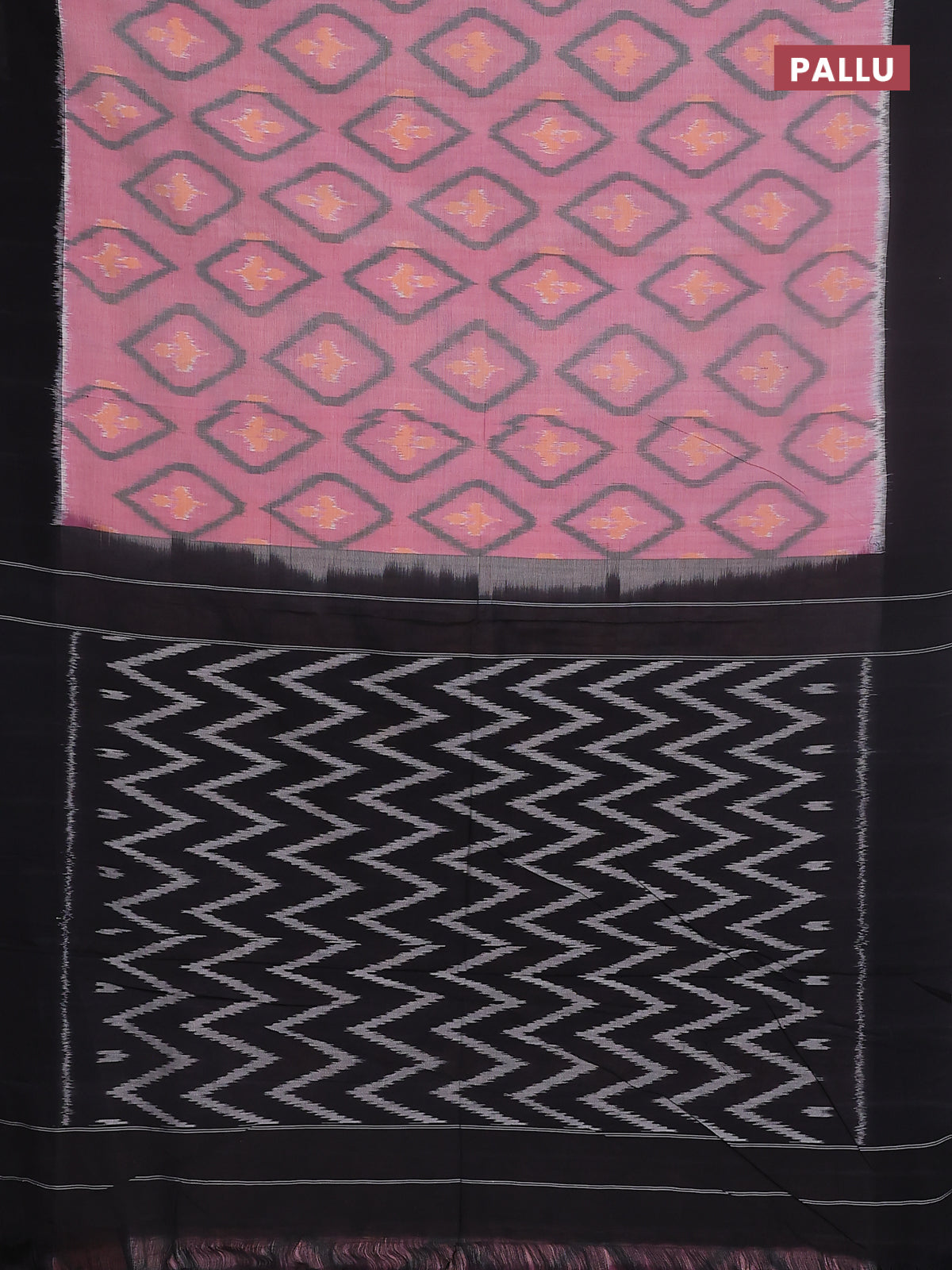 Ikat cotton saree pink shade and black with allover ikat butta weaves and simple border