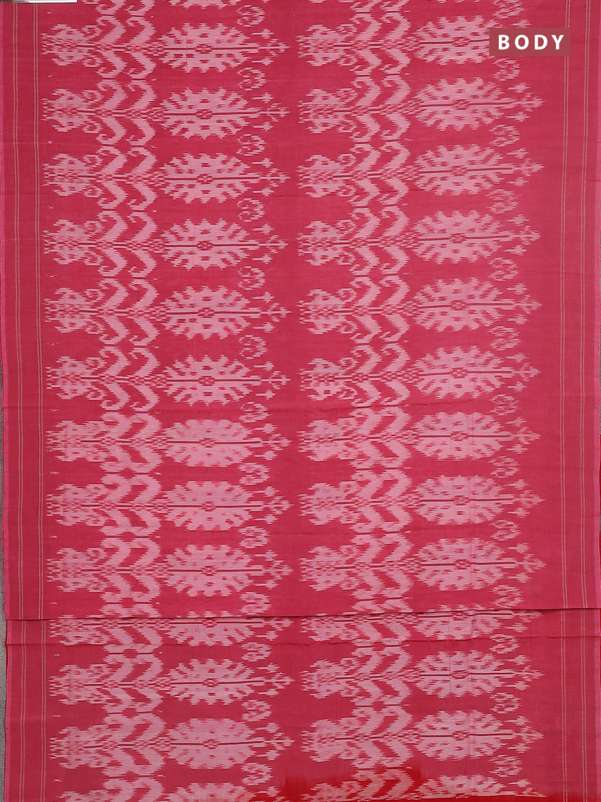 Ikat cotton saree pink shade and red with allover ikat weaves and simple border
