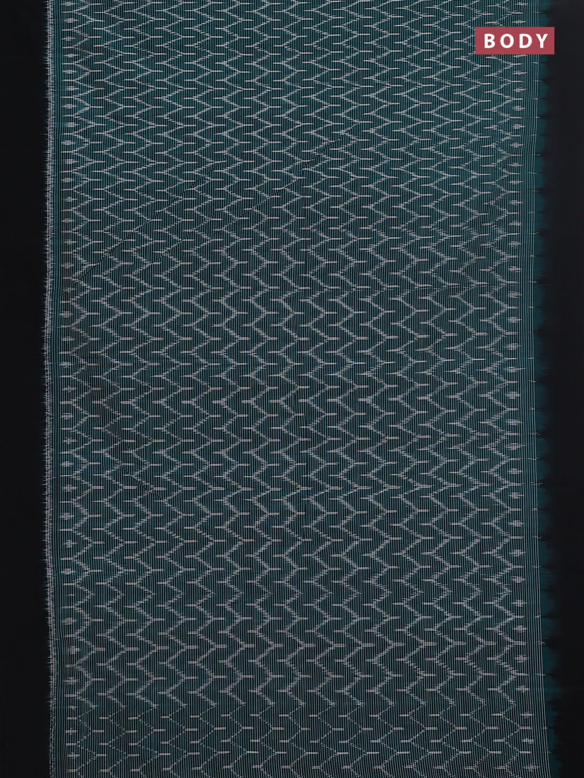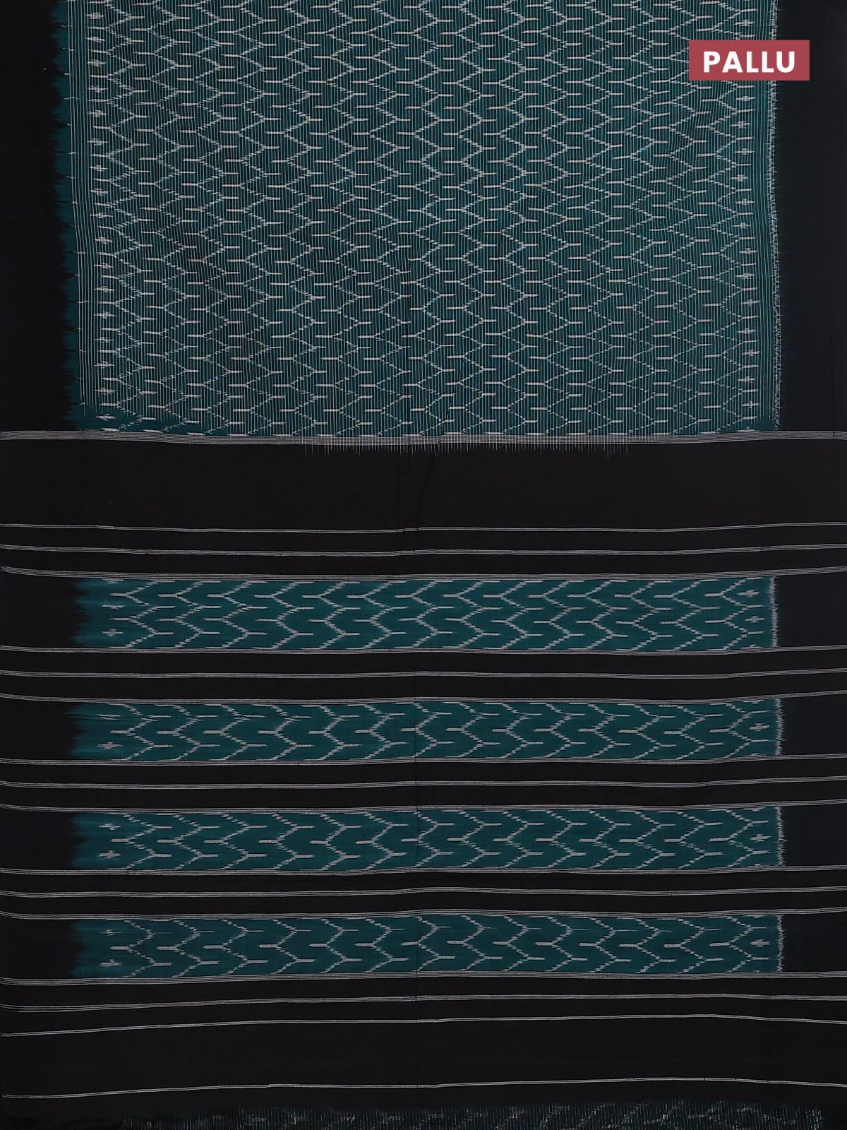 Ikat cotton saree teal green and black with allover ikat weaves and simple border