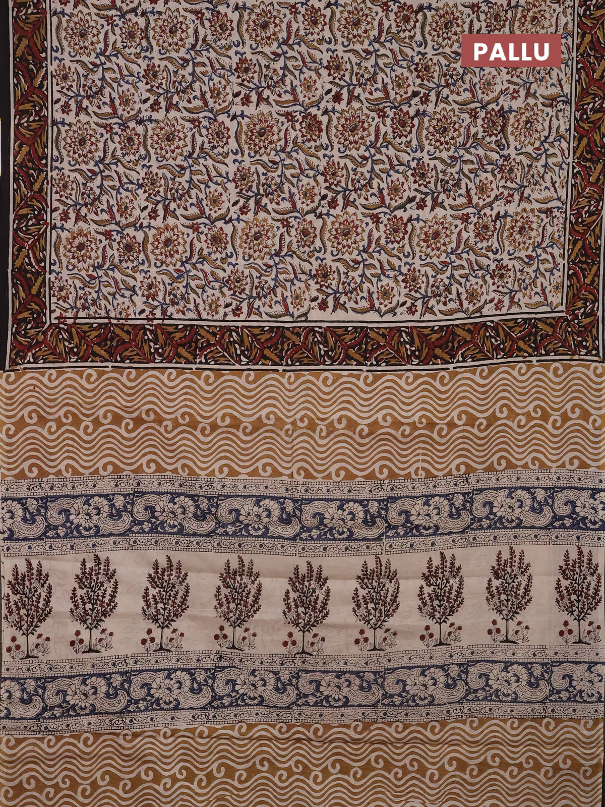 Jaipur cotton saree beige and black with allover kalamkari prints and printed border