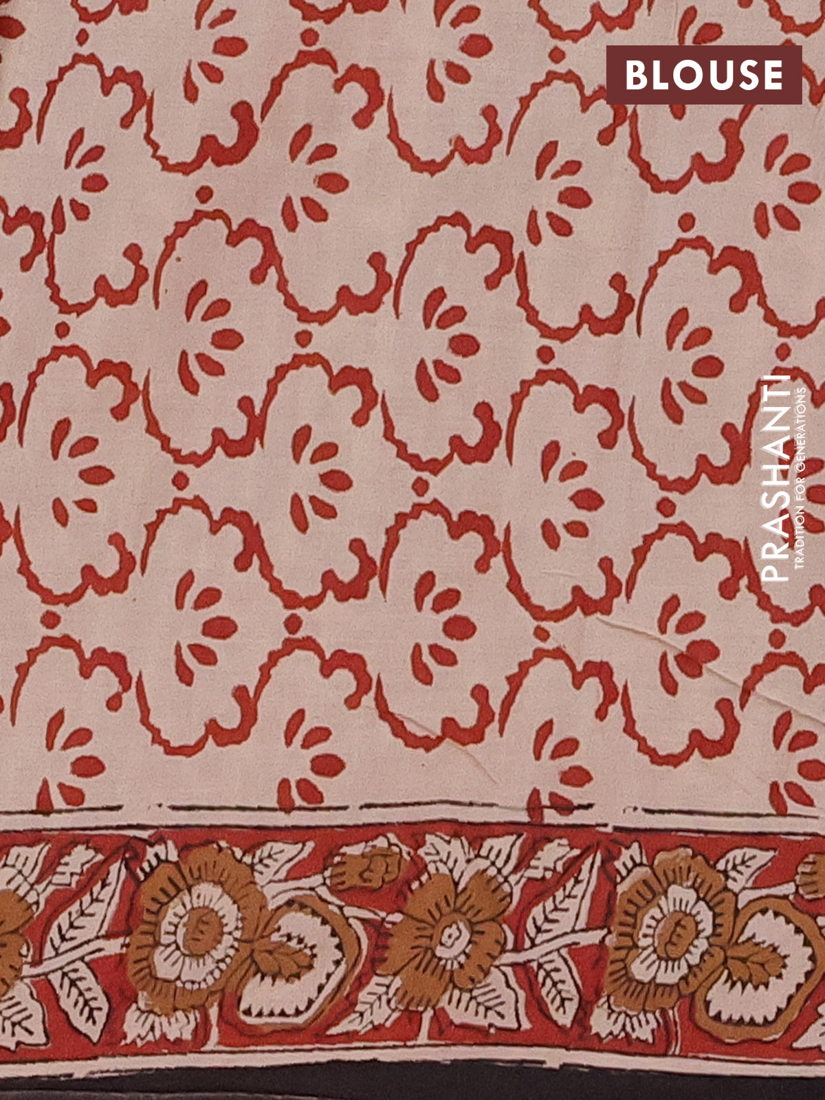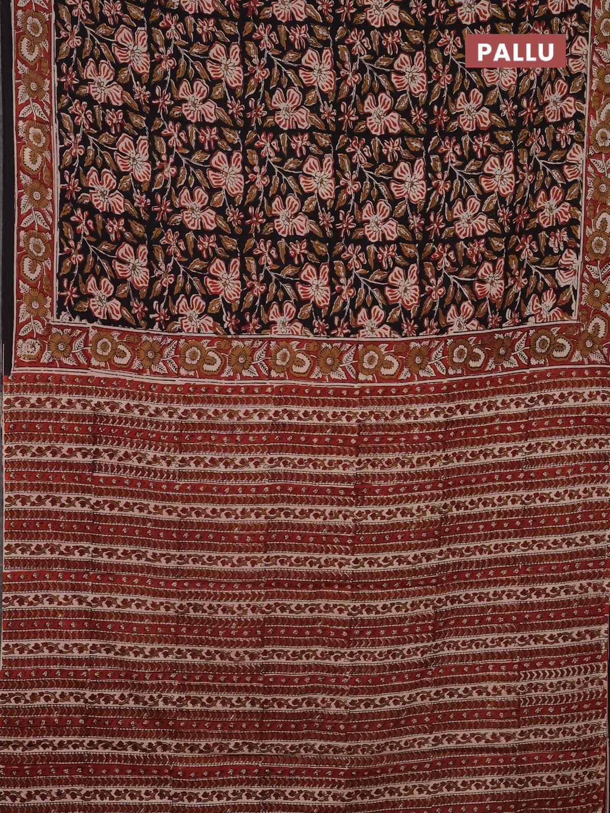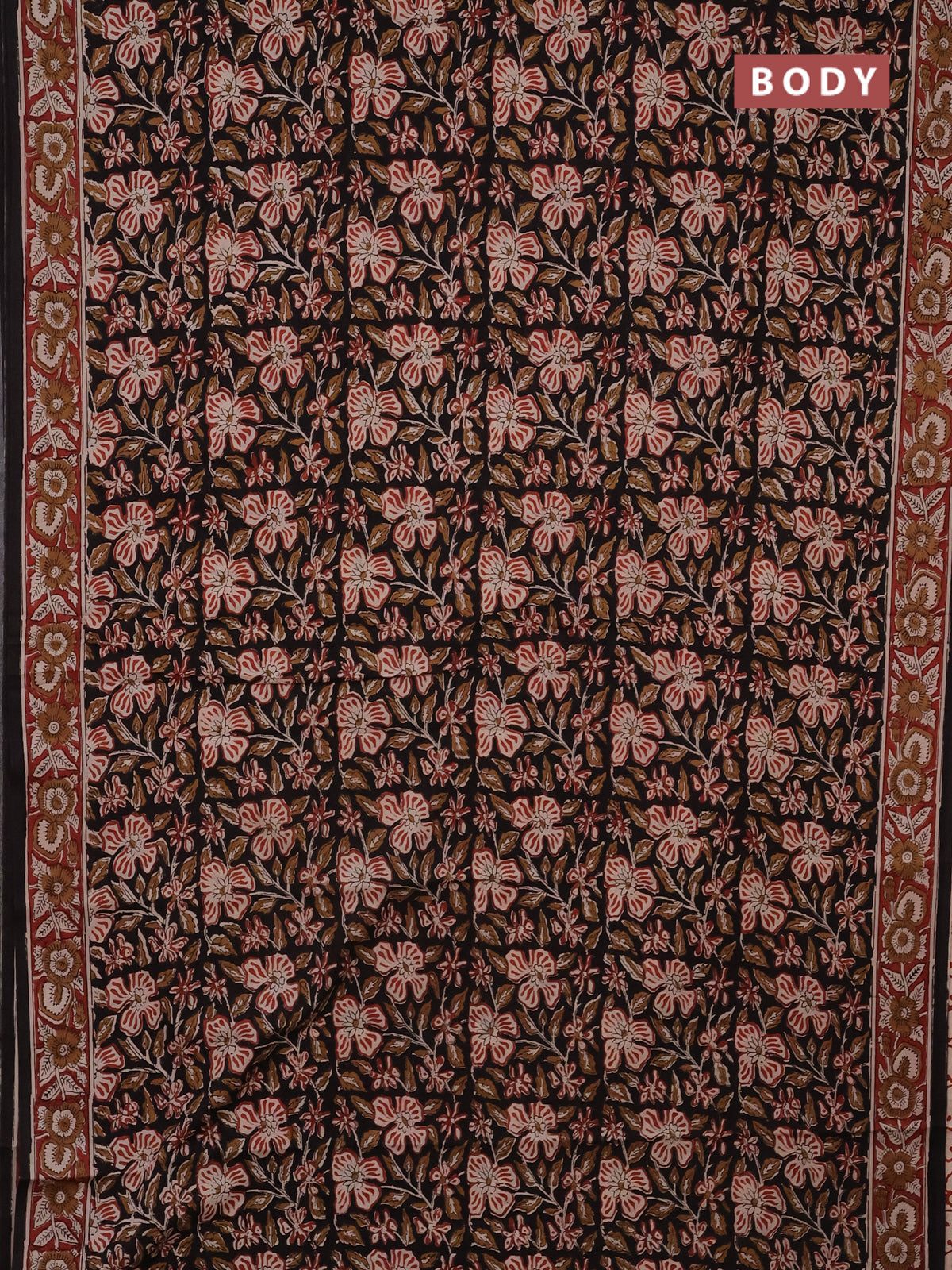 Jaipur cotton saree black and maroon with allover kalamkari prints and printed border