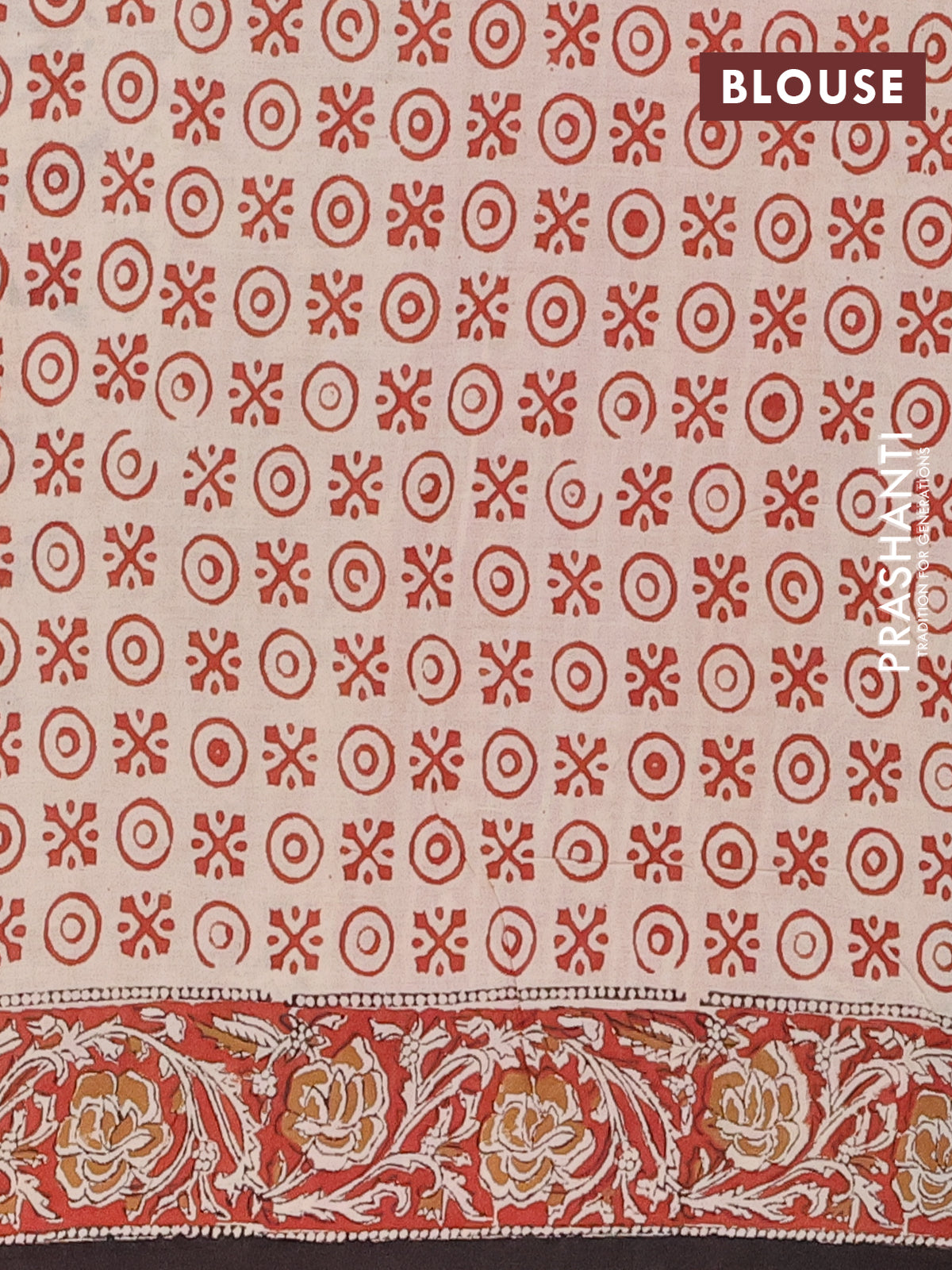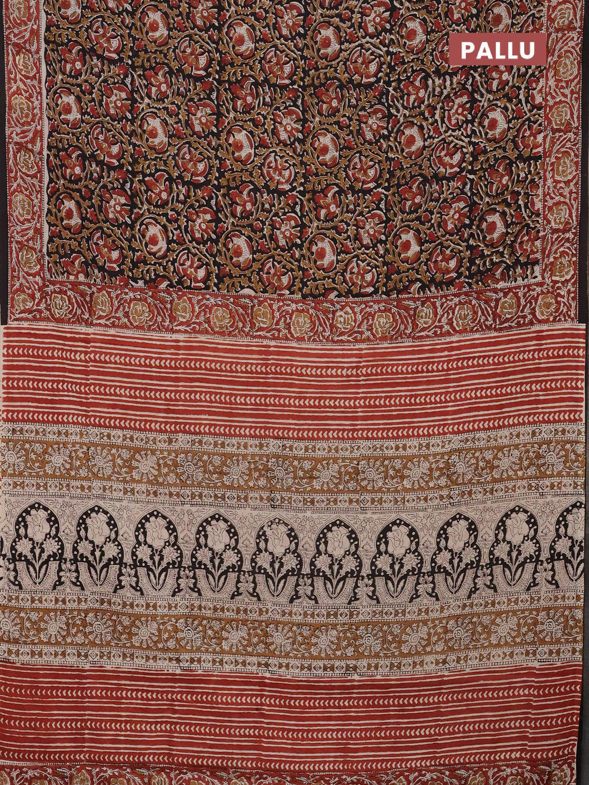 Jaipur cotton saree black and marron with allover kalamkari prints and printed border