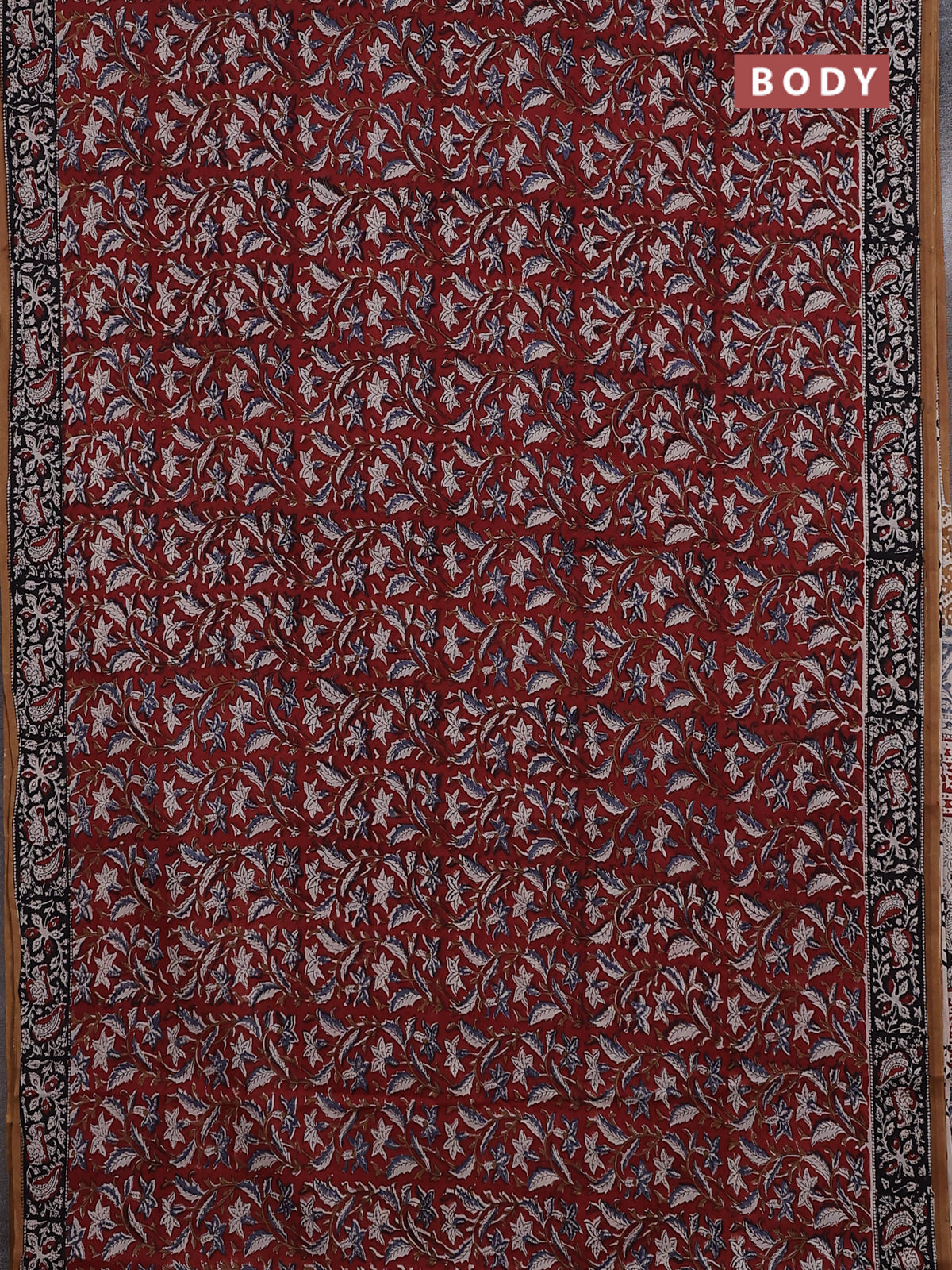 Jaipur cotton saree maroon and black with allover kalamkari prints and printed border