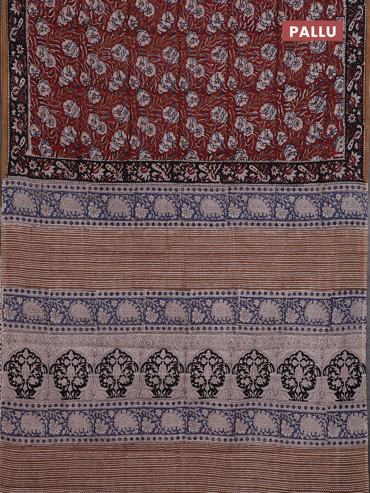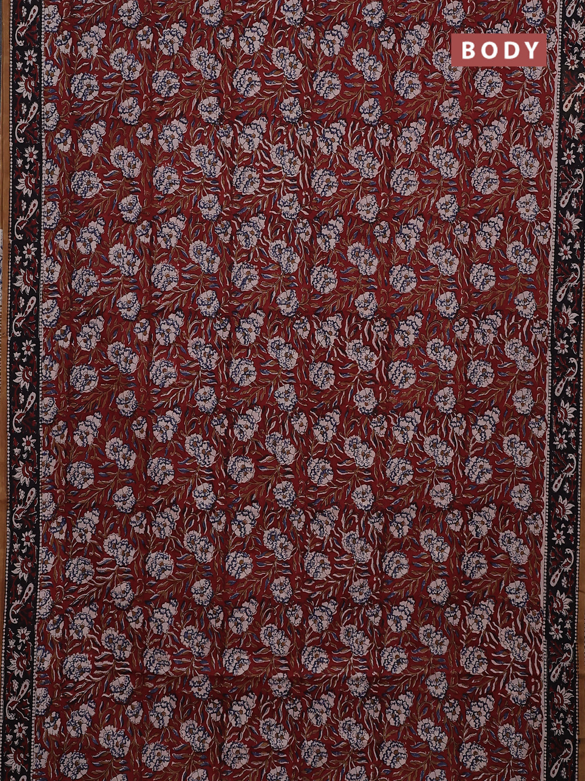Jaipur cotton saree maroon and sandal with allover kalamkari prints and printed border
