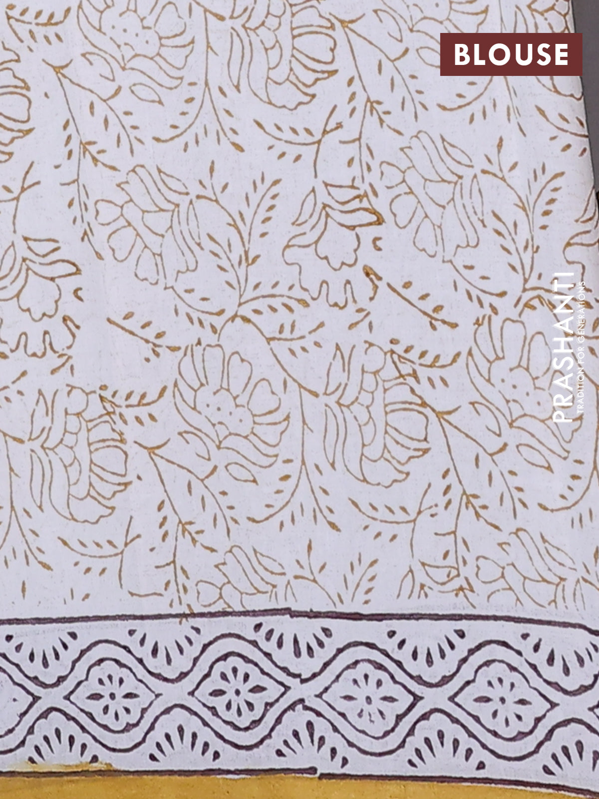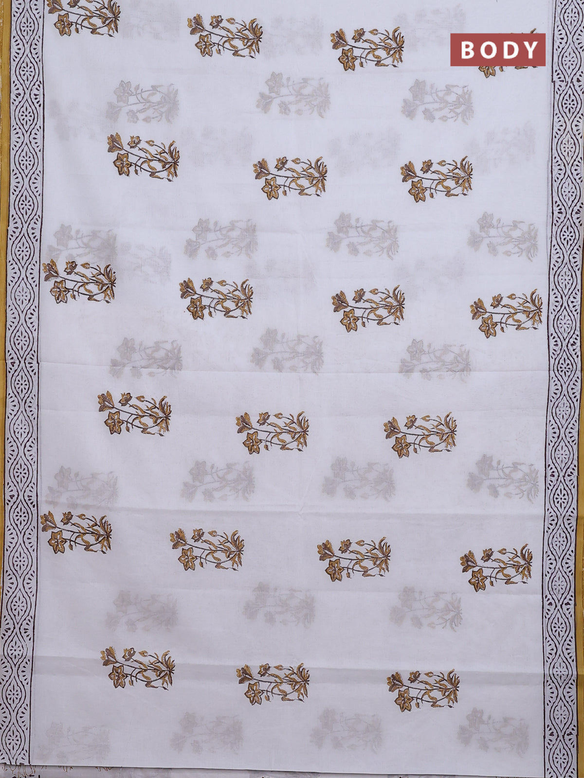 Jaipur cotton saree off white and mustard with floral butta prints and printed border