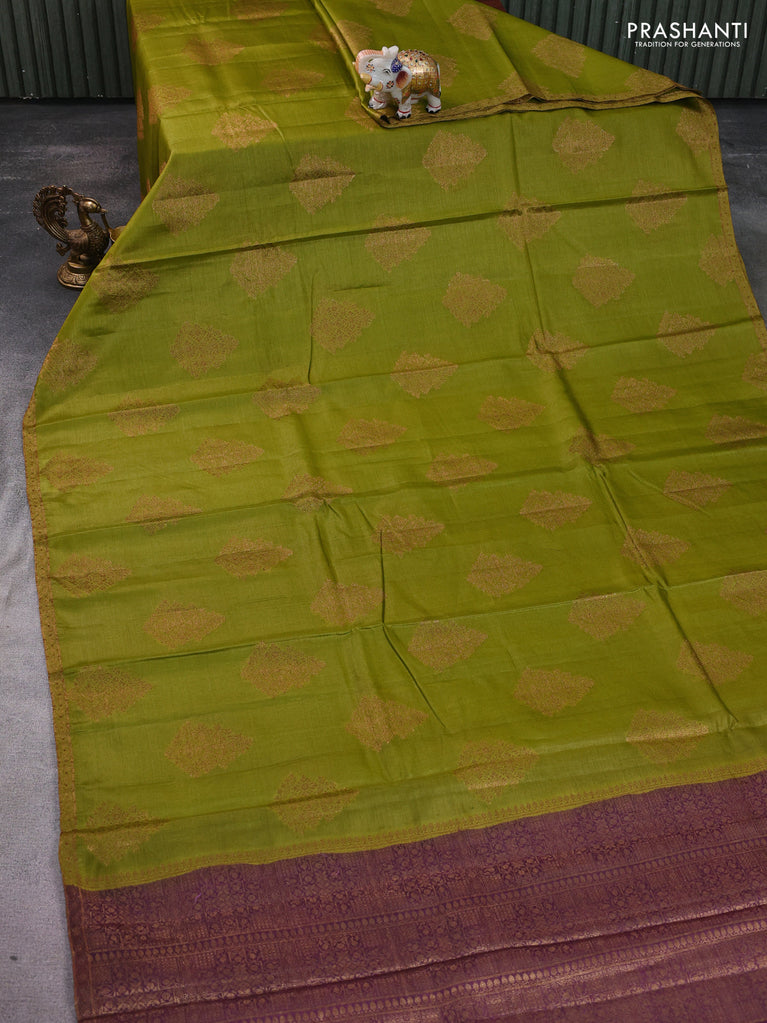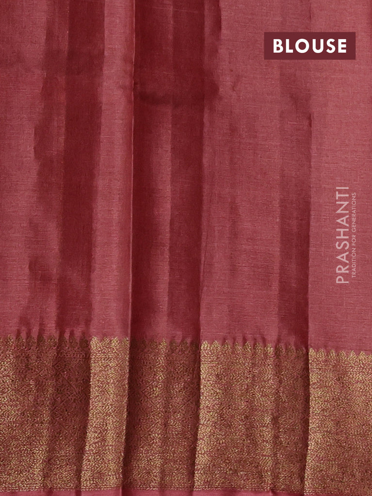 Banarasi tussar silk saree light green and wine shade with thread & zari woven buttas and woven border