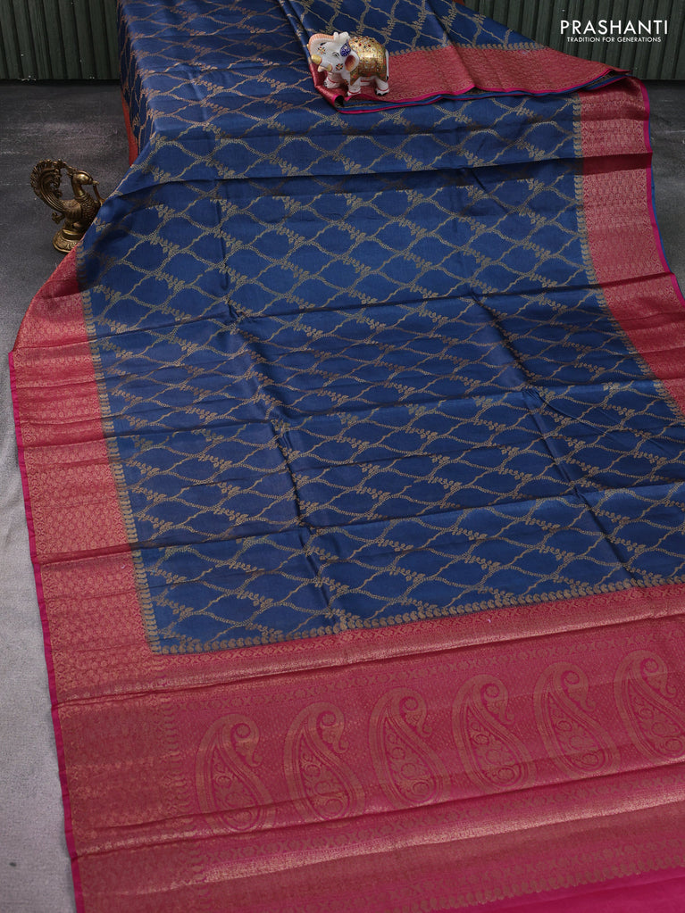 Banarasi tussar silk saree peacock blue and magenta pink with allover thread & zari woven buttas and woven border