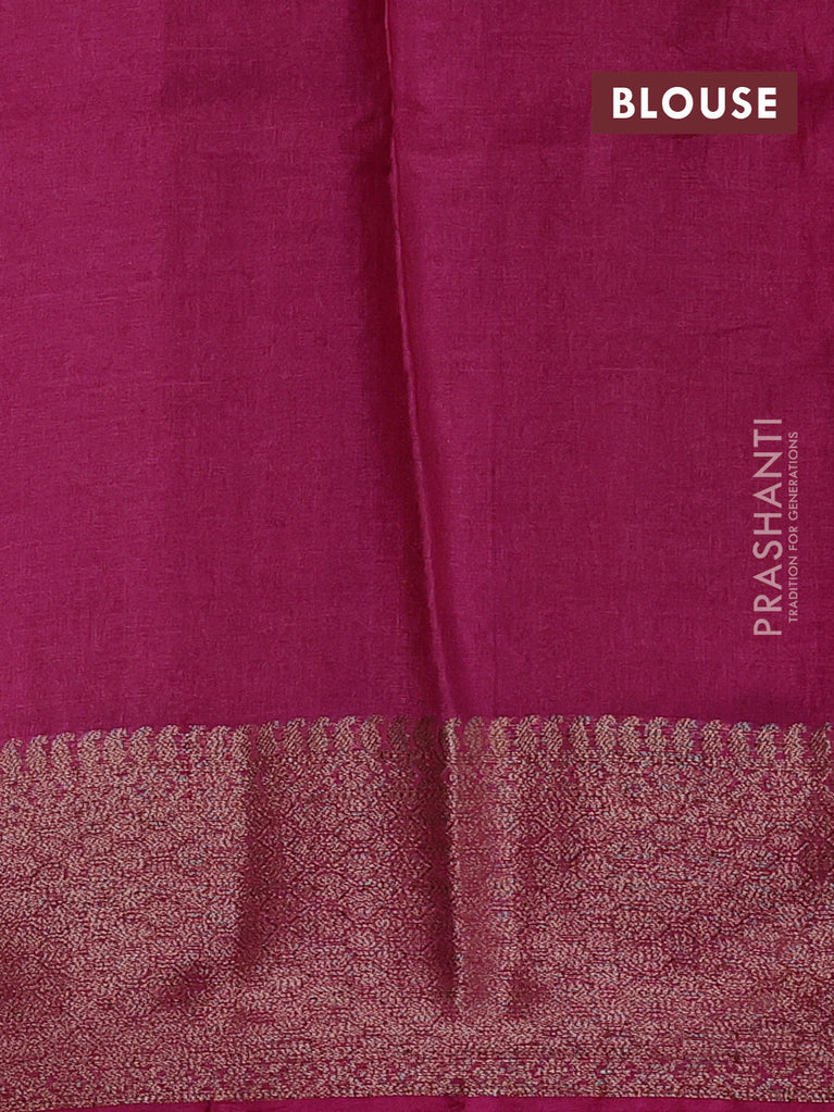 Banarasi tussar silk saree magenta pink and green with thread & zari woven buttas and woven border