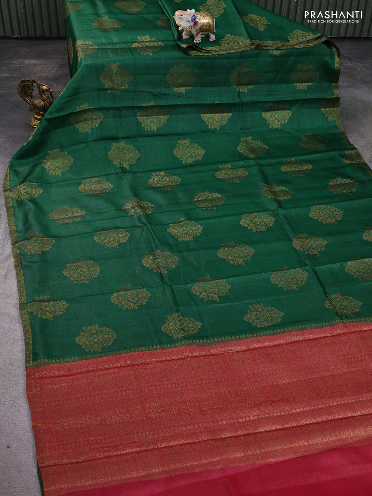 Banarasi tussar silk saree green and maroon with thread & zari woven buttas and woven border