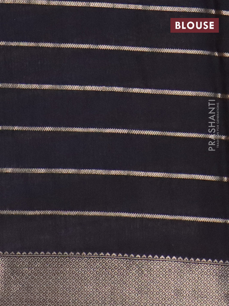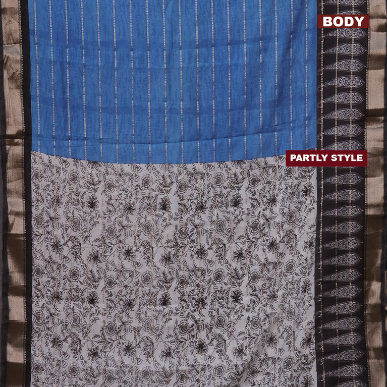 Assam partly silk saree blue and black with allover digital prints & zari weaves and zari woven border