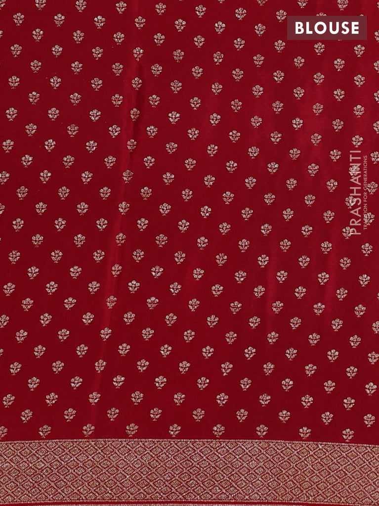 Banarasi crepe saree green and red with allover thread & zari weaves and woven border