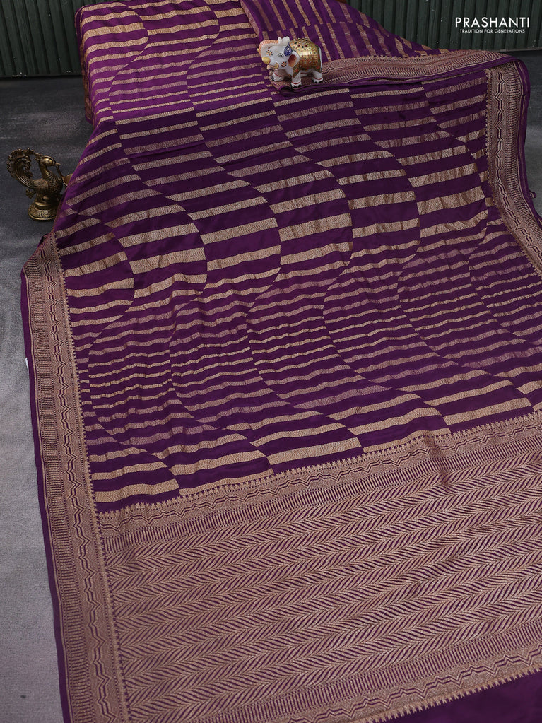 Banarasi crepe saree deep purple with allover geometric weaves and woven border