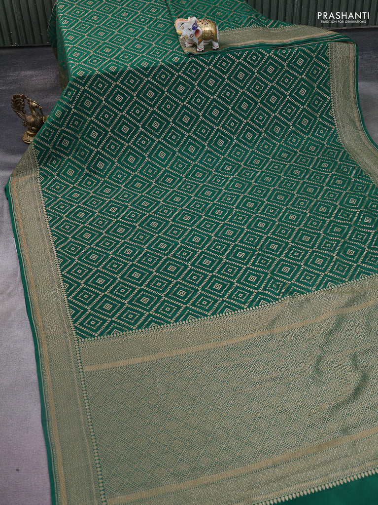 Banarasi crepe saree green with allover geometric weaves and woven border