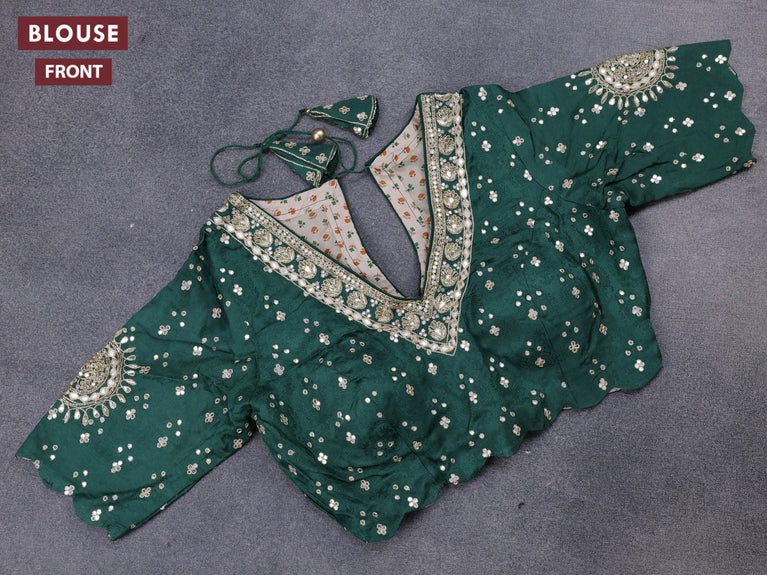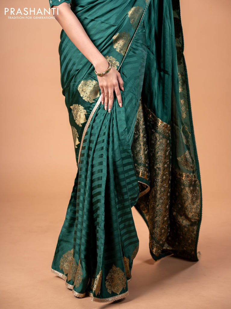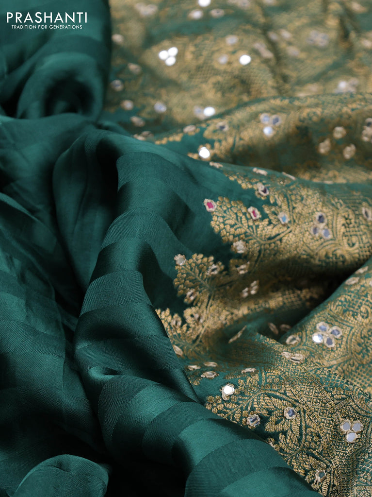Banarasi crepe saree green with stripes pattern and mirror work & banarasi style border