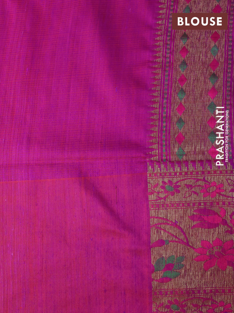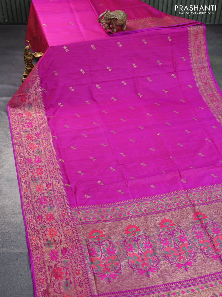 Banarasi dupion silk saree magenta pink with zari woven buttas and floral design paithani style border