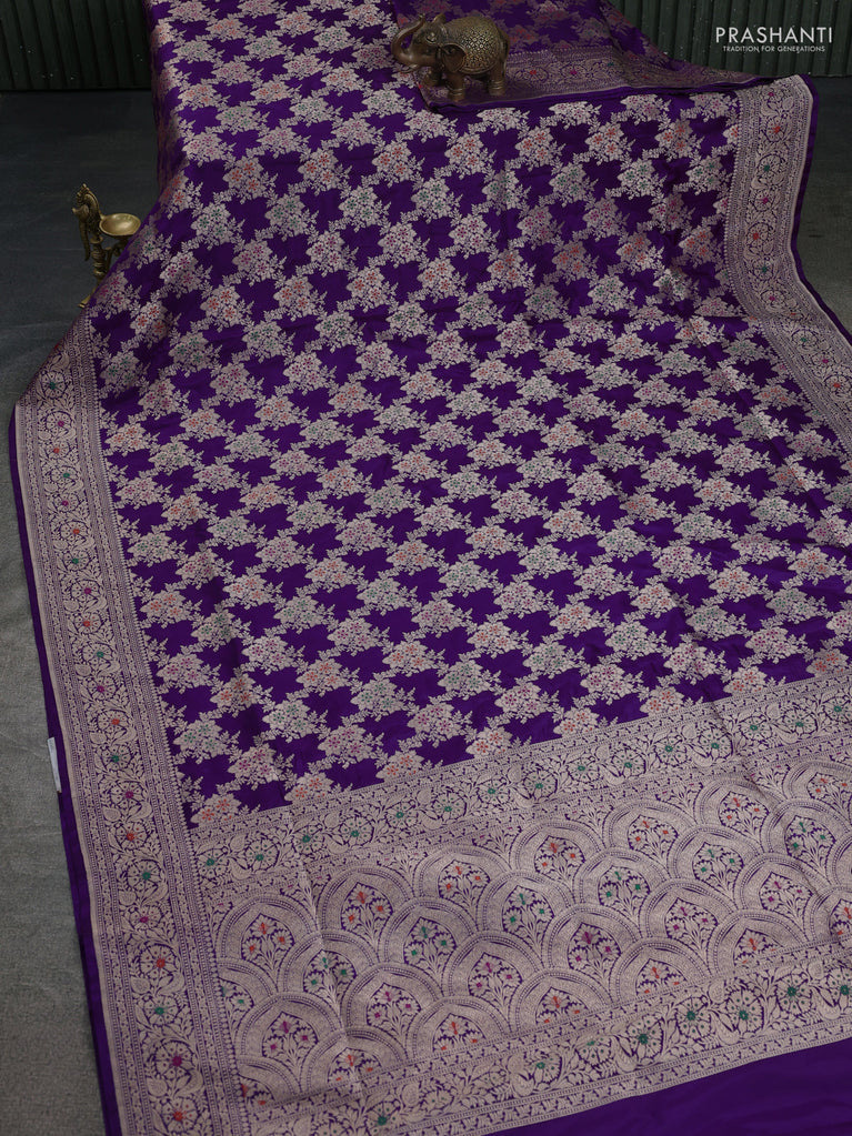 Banarasi uppada silk saree purple with allover zari woven floral brocade weaves and zari woven border