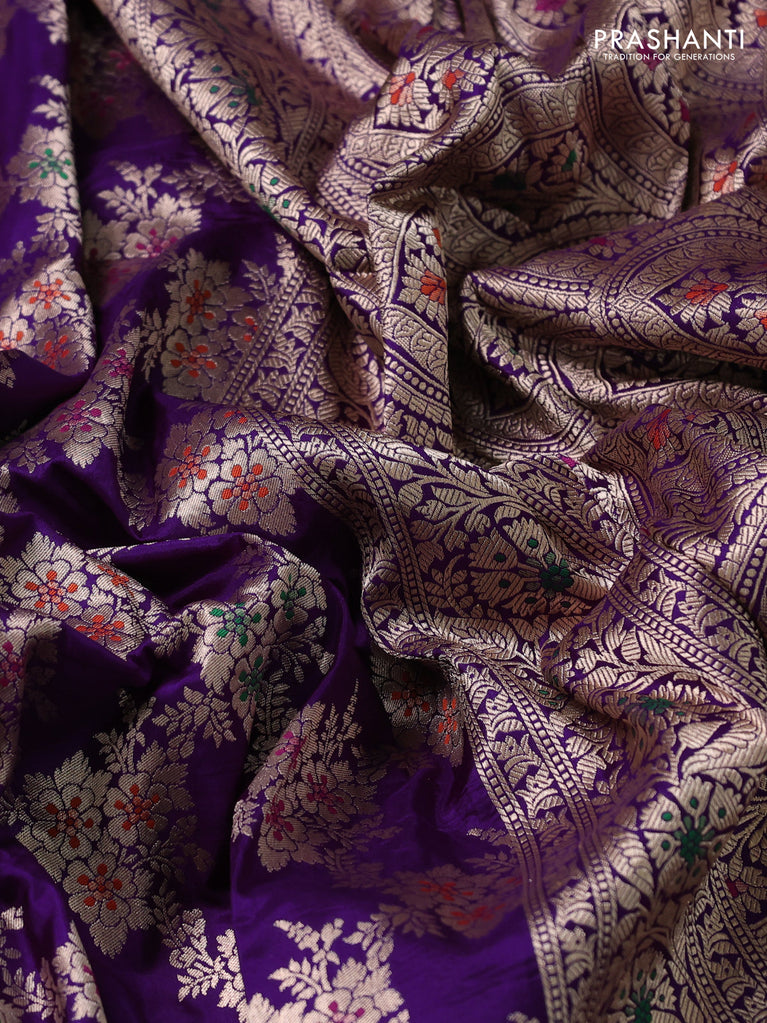 Banarasi uppada silk saree violet with allover zari woven mina weaves and zari woven border