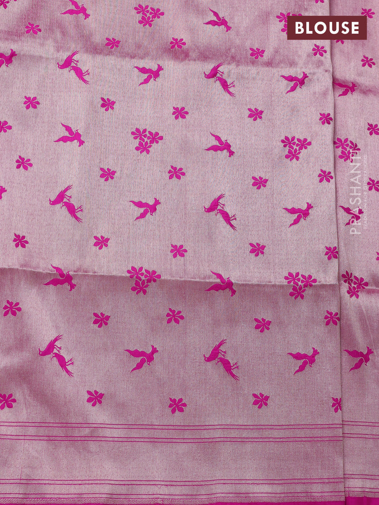 Banarasi uppada tissue silk saree silver and pink with allover zari woven brocade weaves and zari woven border