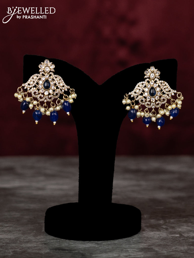 Beaded blue necklace with sapphire & cz stones and pearl hangings in zircon finish