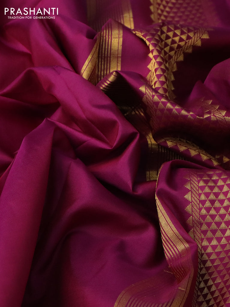 10 Yards silk saree dark magenta pink and dual shade of green with plain body and zari woven border