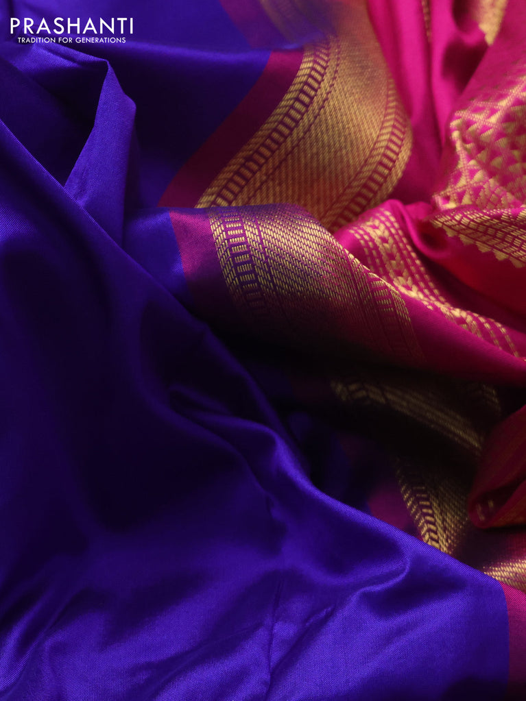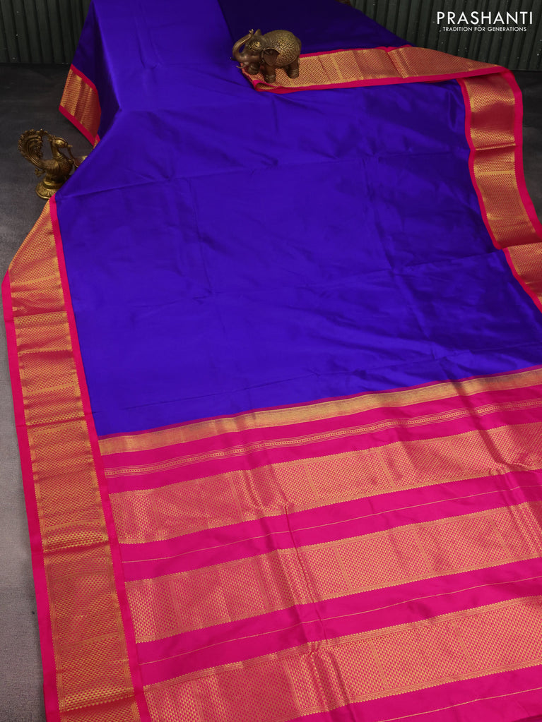 10 yards silk saree blue and maroon with plain body and temple design zari woven border