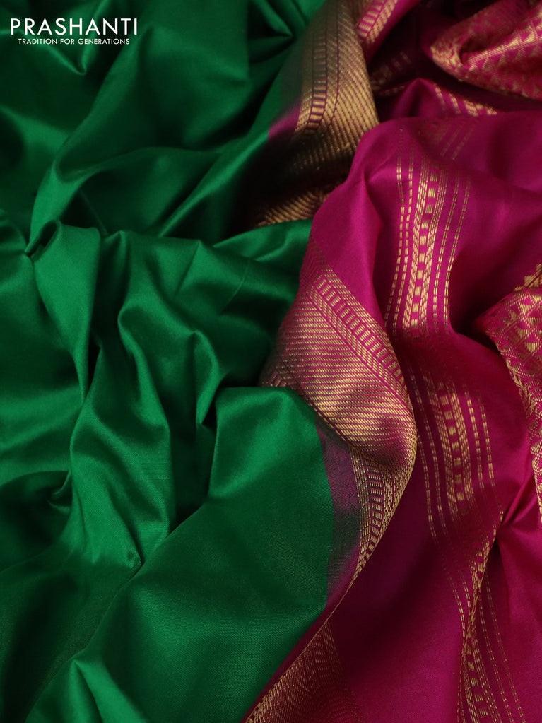 10 Yards silk saree green and dark magenta pink with plain body and zari woven border