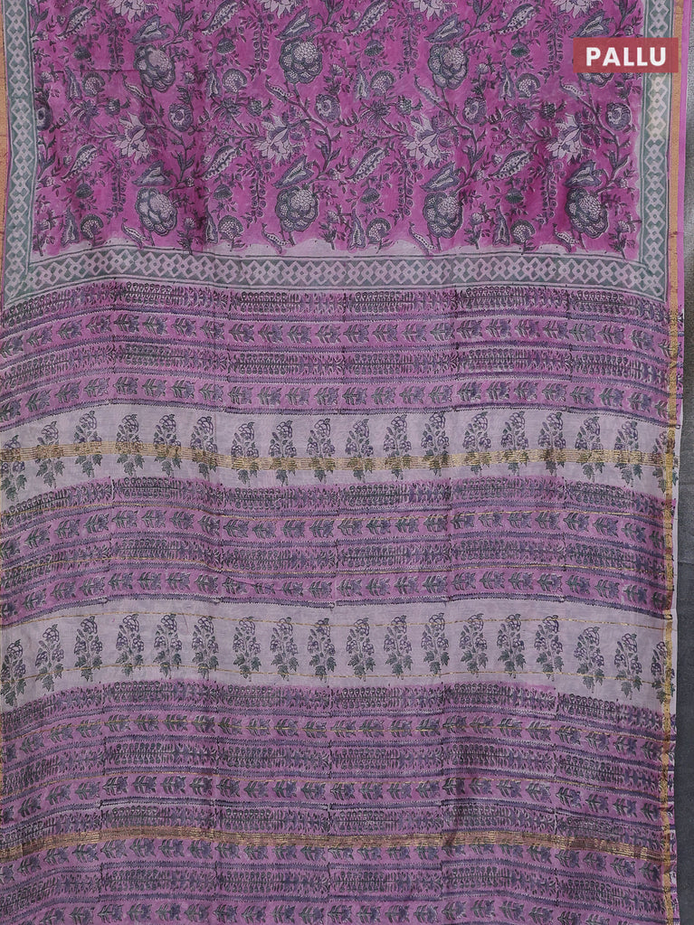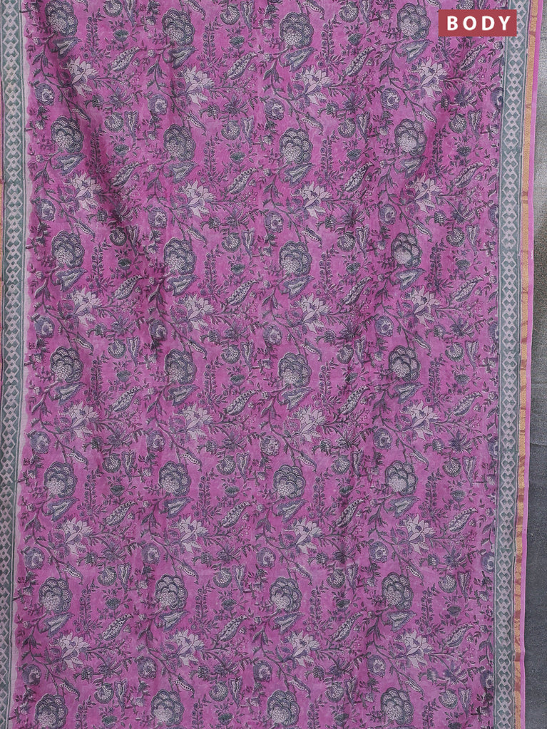 Chanderi bagru saree lotus pink with allover kalamkari prints and small zari woven border