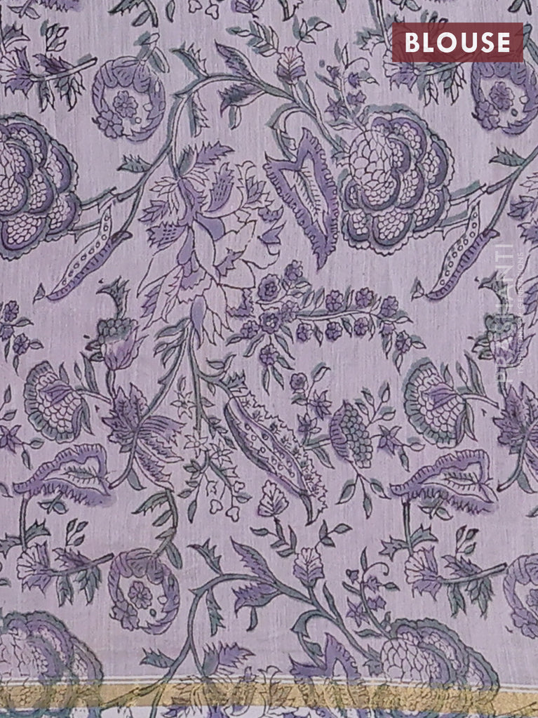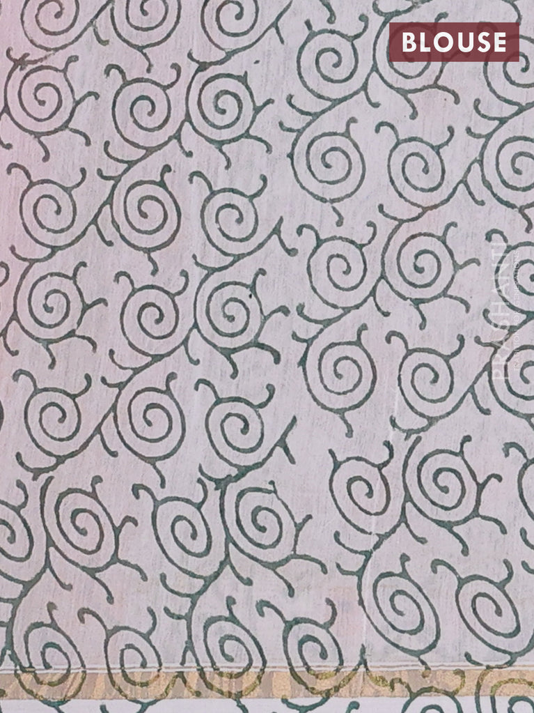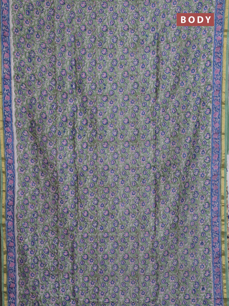 Chanderi bagru saree pastel green with allover floral prints and small zari woven border