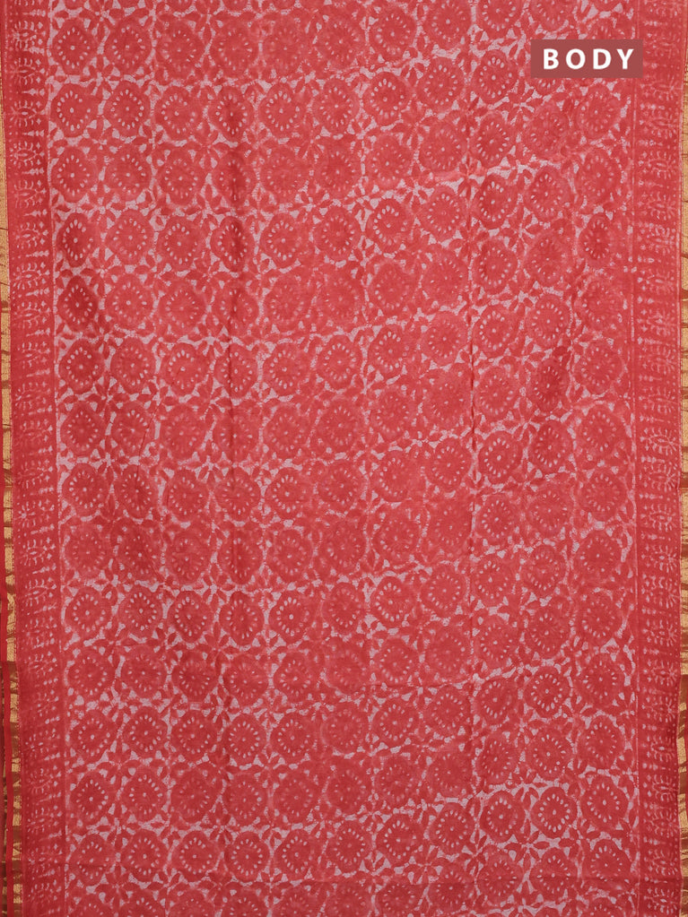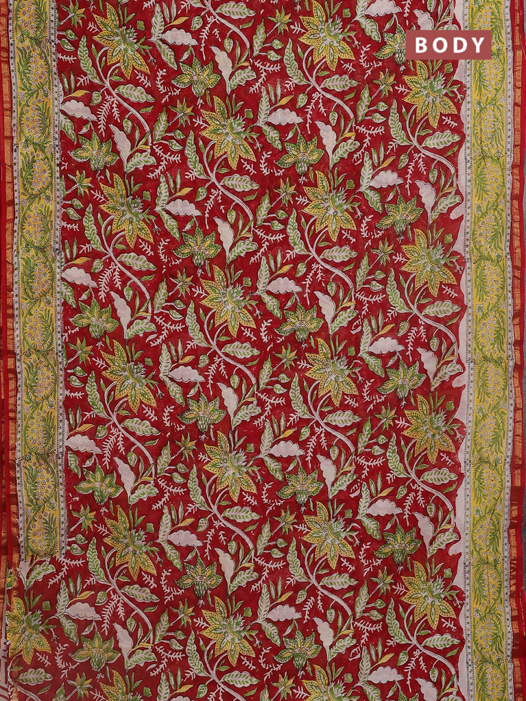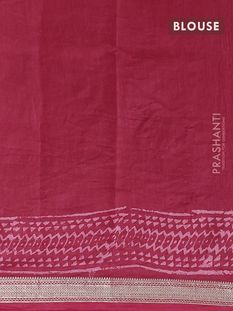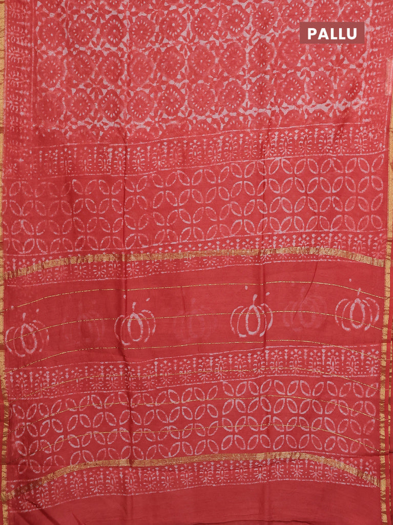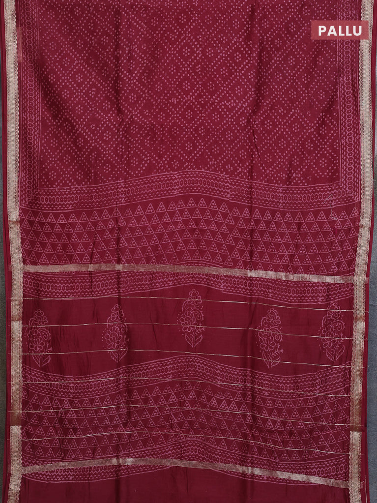 Chanderi bagru saree maroon with allover prints and small zari woven border
