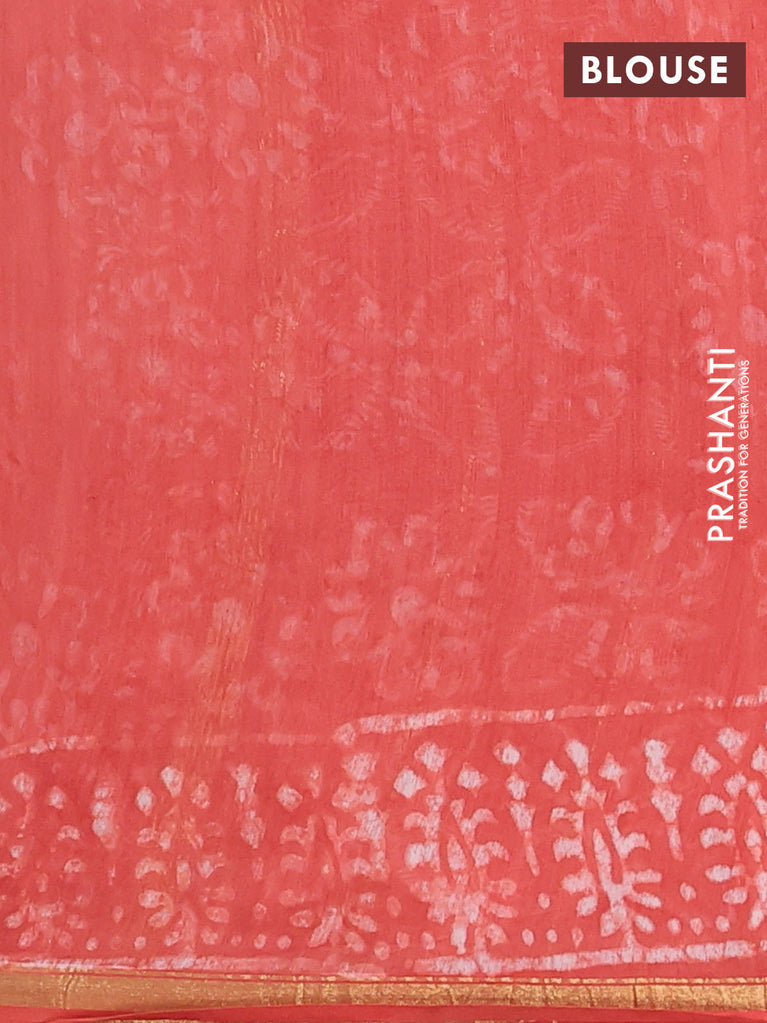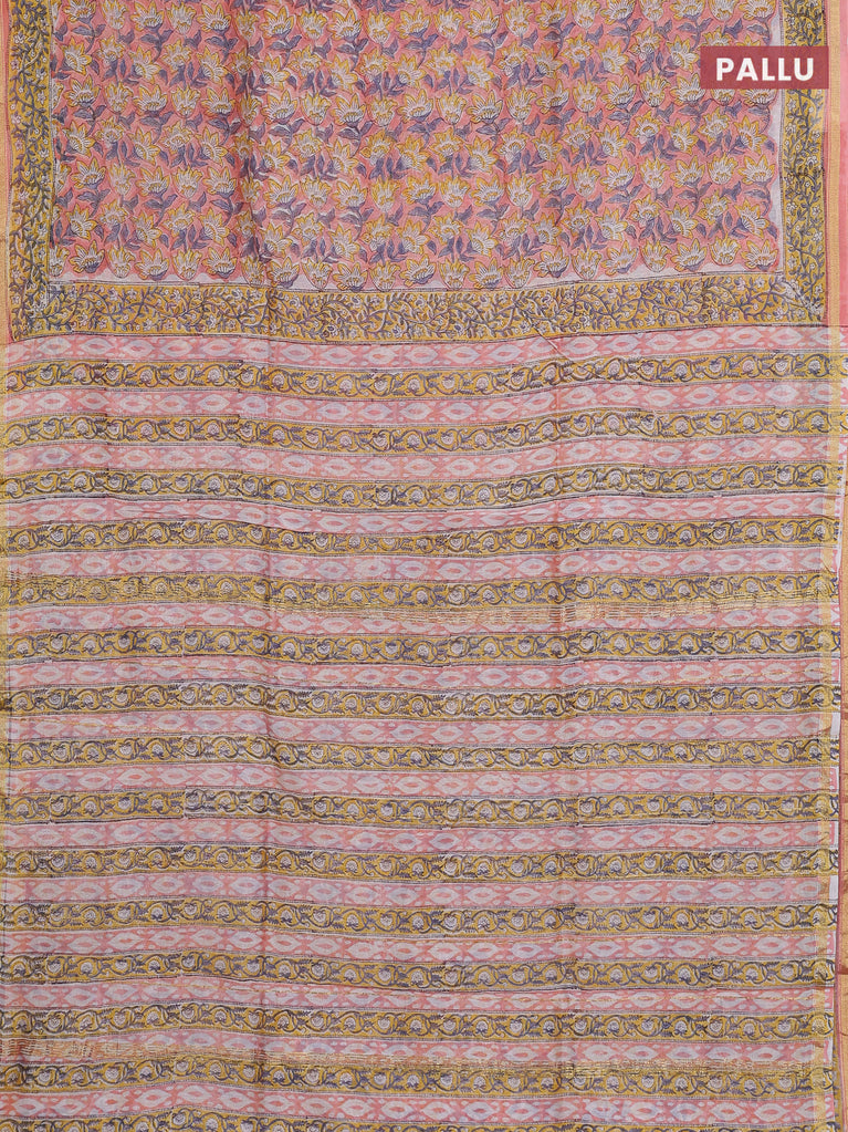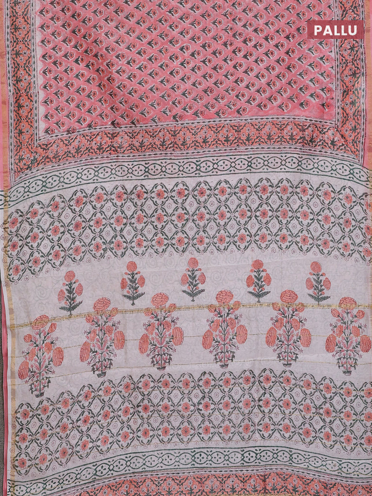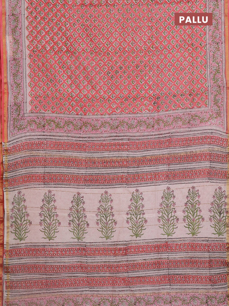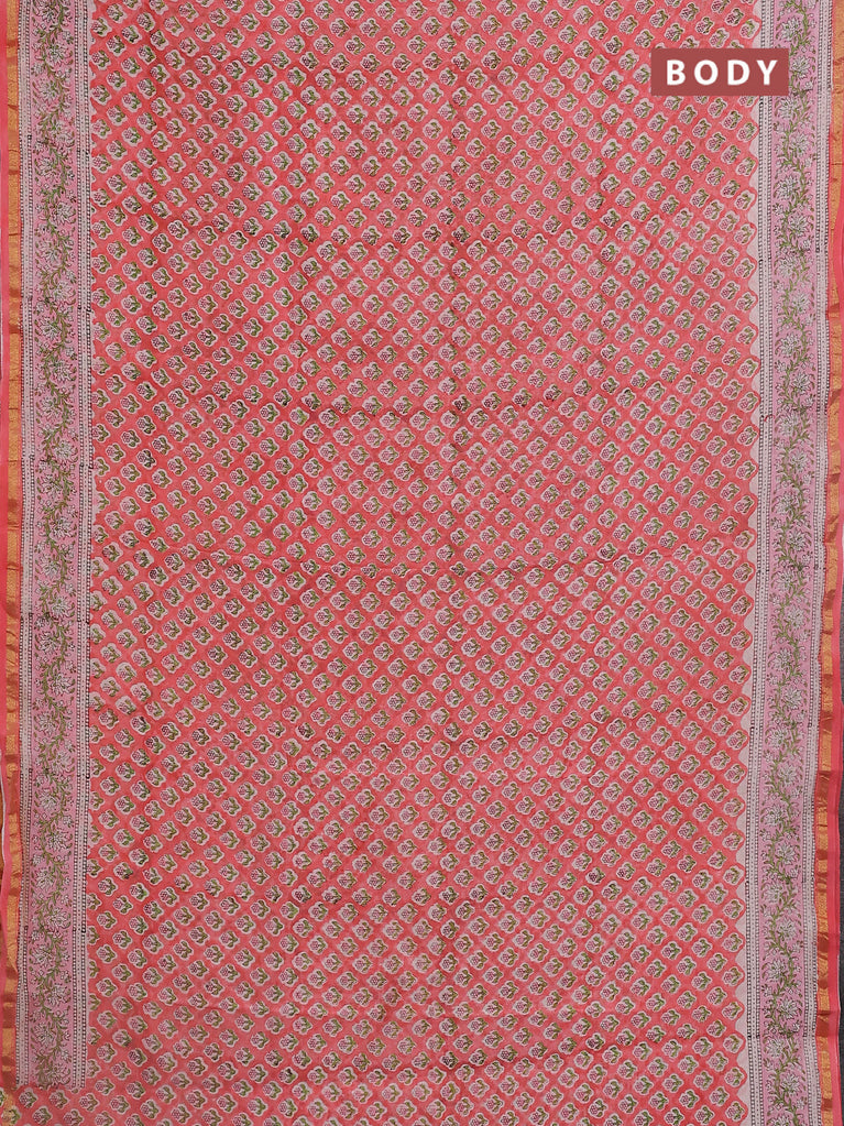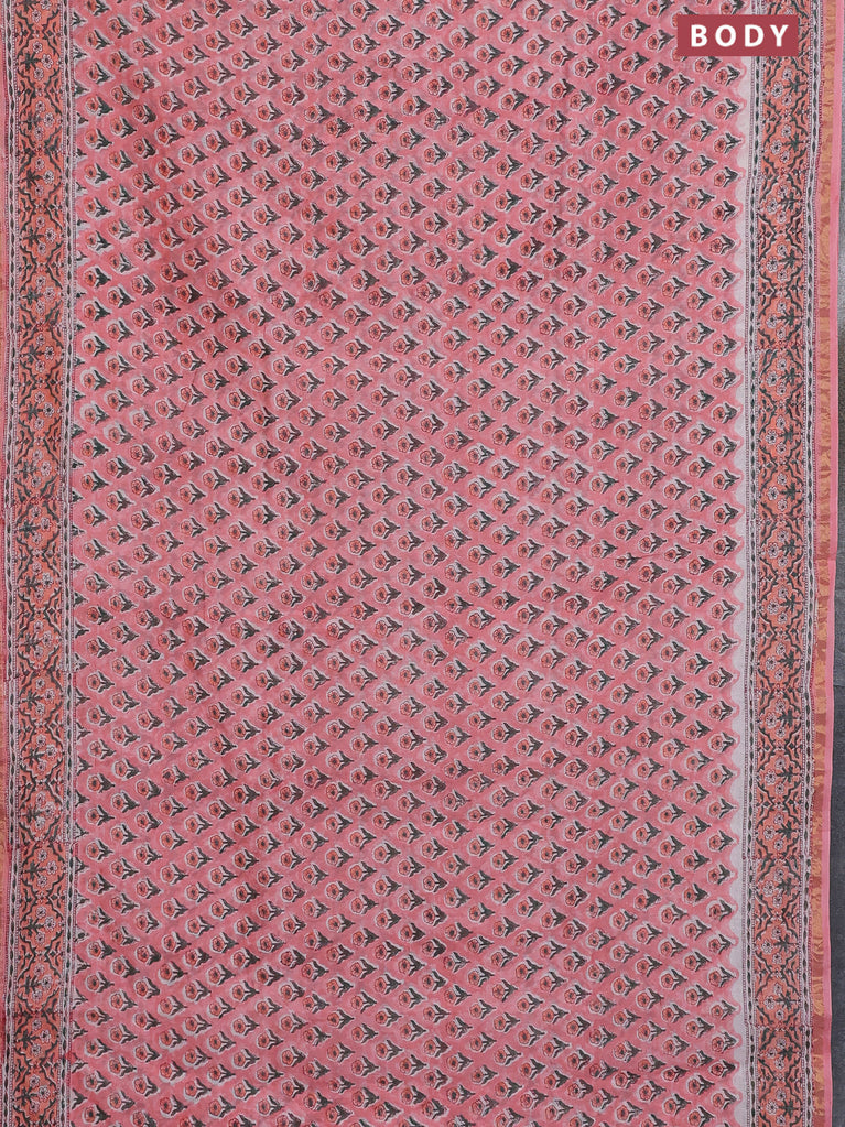 Chanderi bagru saree peach pink with floral butta prints and small zari woven border