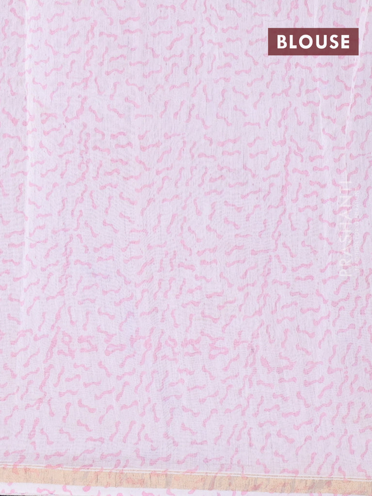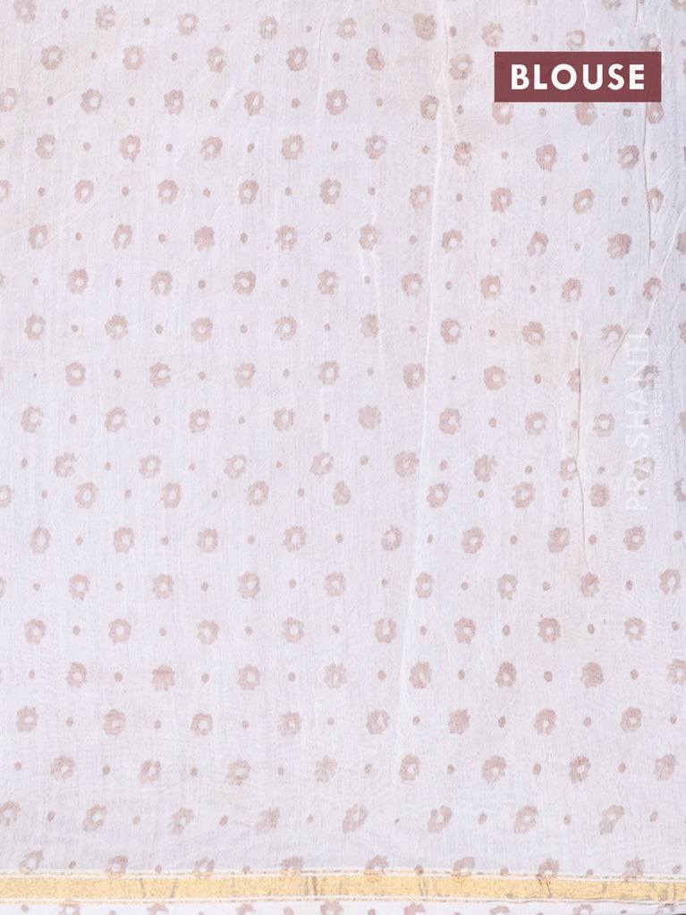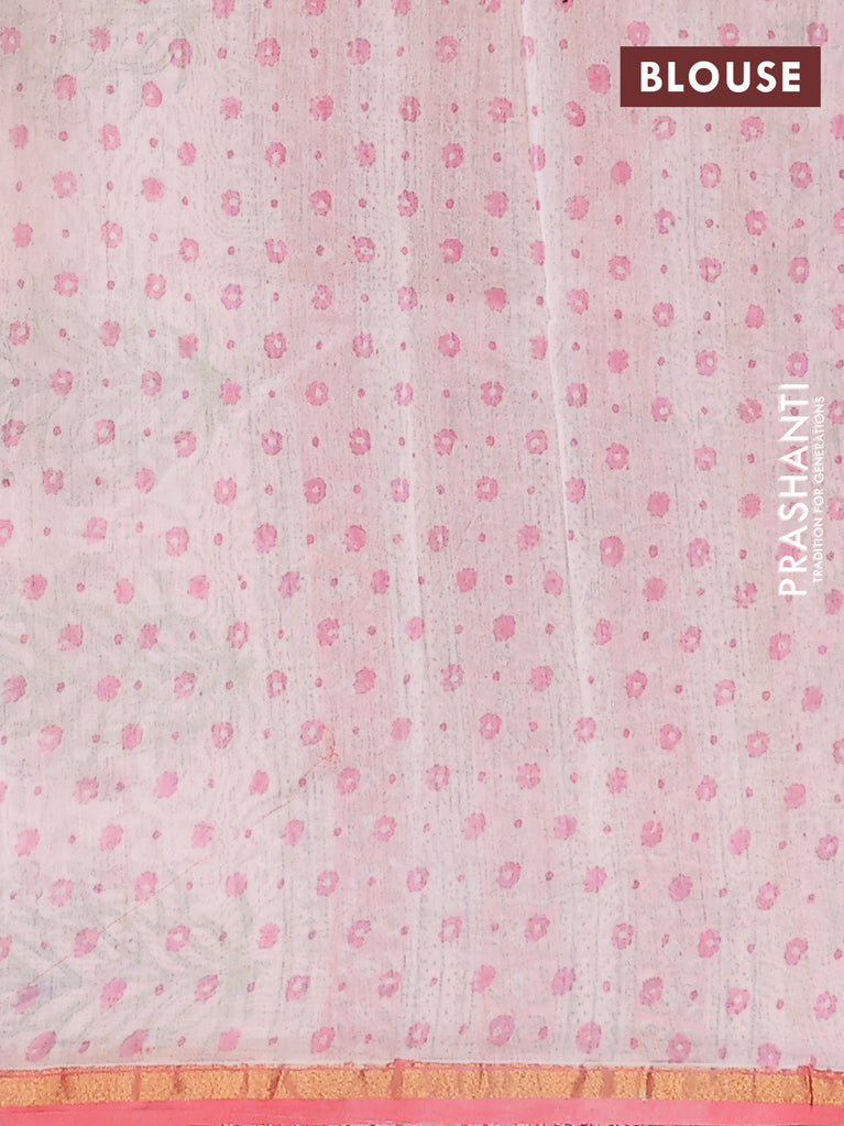 Chanderi bagru saree peach pink and off white with allover floral butta prints and small zari woven border