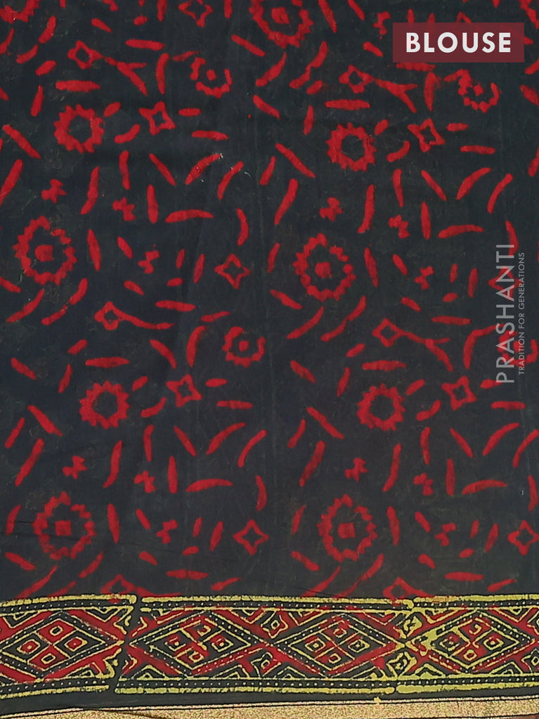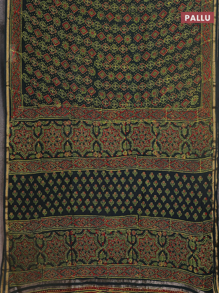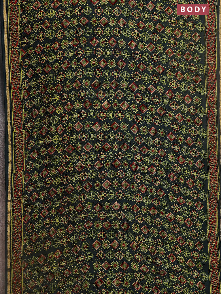 Chanderi bagru saree bottle green with allover ajrakh prints and small zari woven border