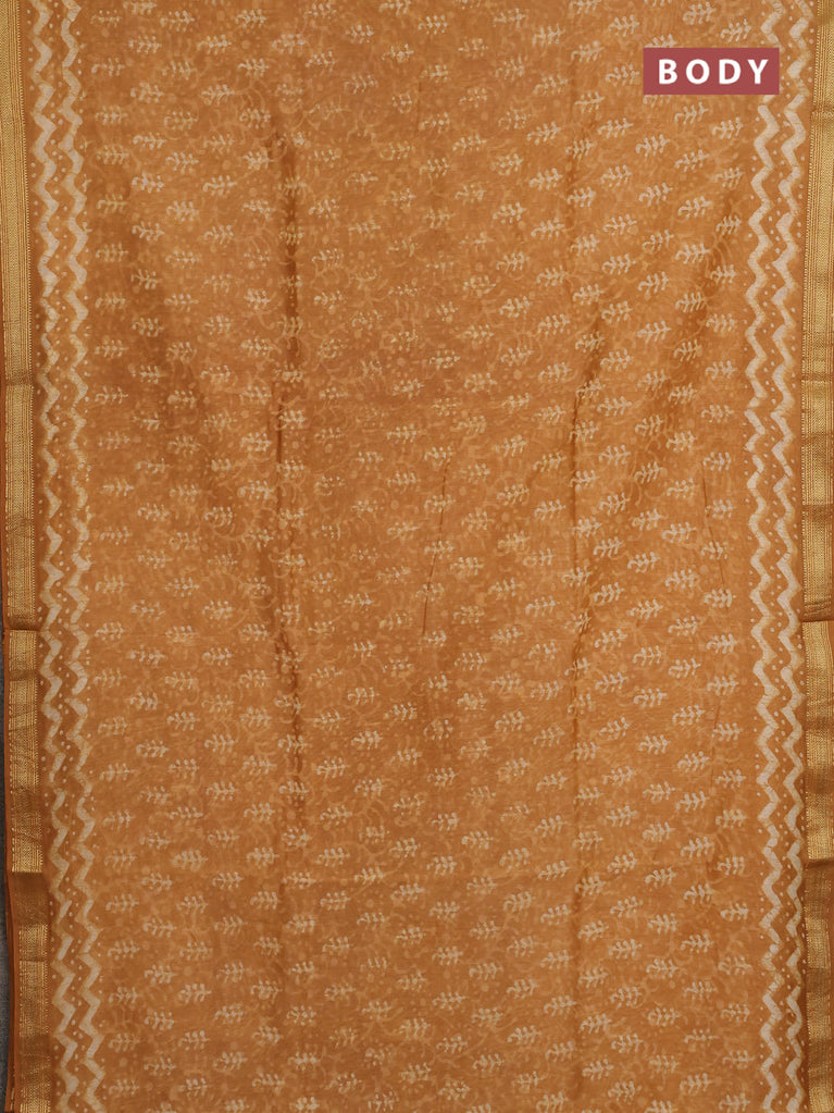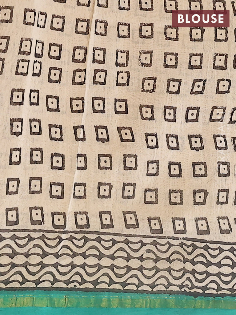 Chanderi bagru saree cream and yellow with allover prints and maheshwari border