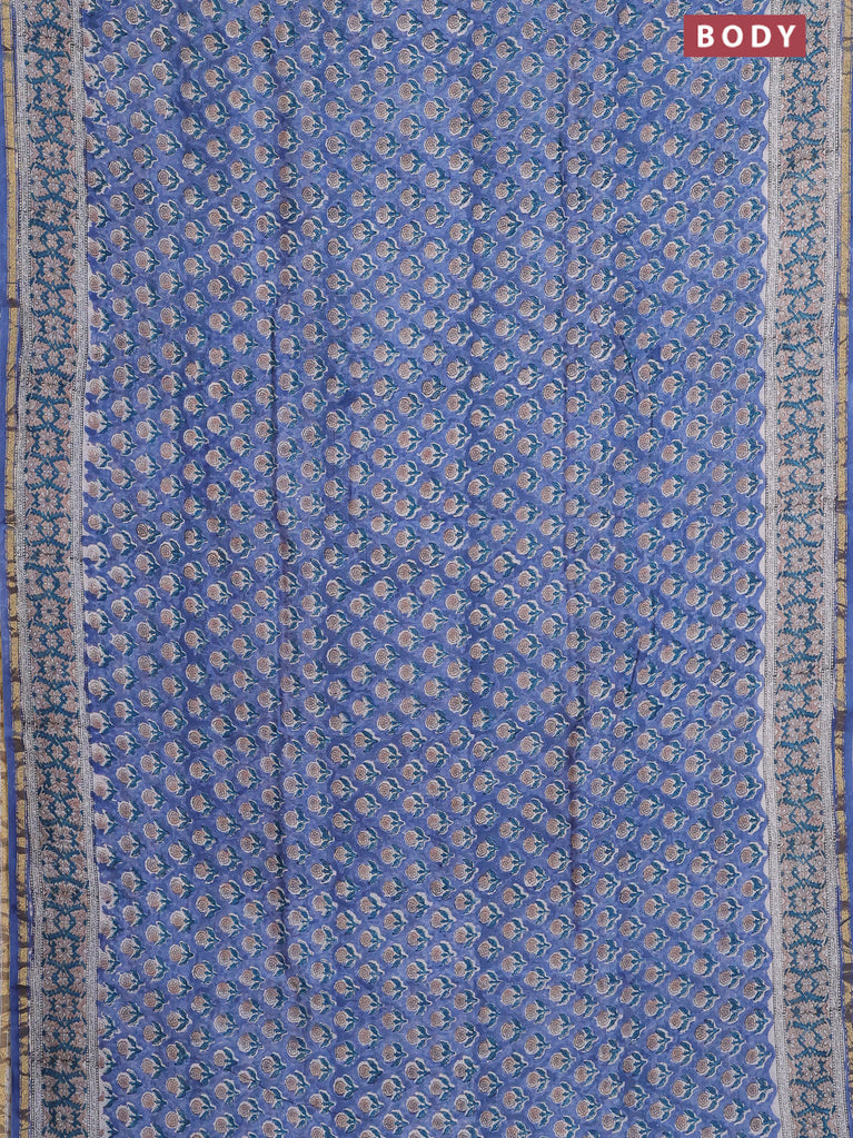 Chanderi bagru saree blue with floral butta prints and small zari woven border