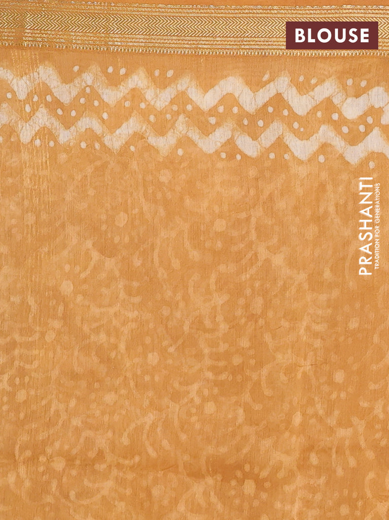 Chanderi bagru saree mustard yellow with allover ikat prints and maheshwari border