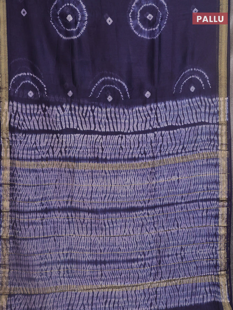 Chanderi bagru saree navy blue with shibori prints and maheshwari border