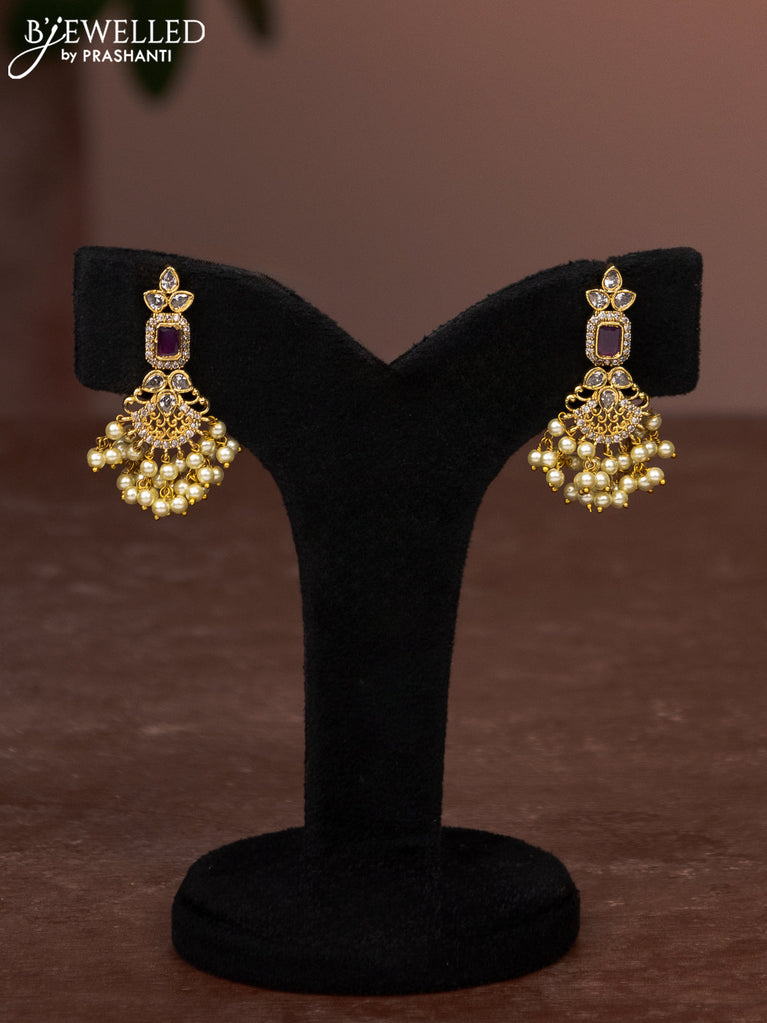 Antique earrings peacock design with kemp & cz stones and pearl & pink beads hangings