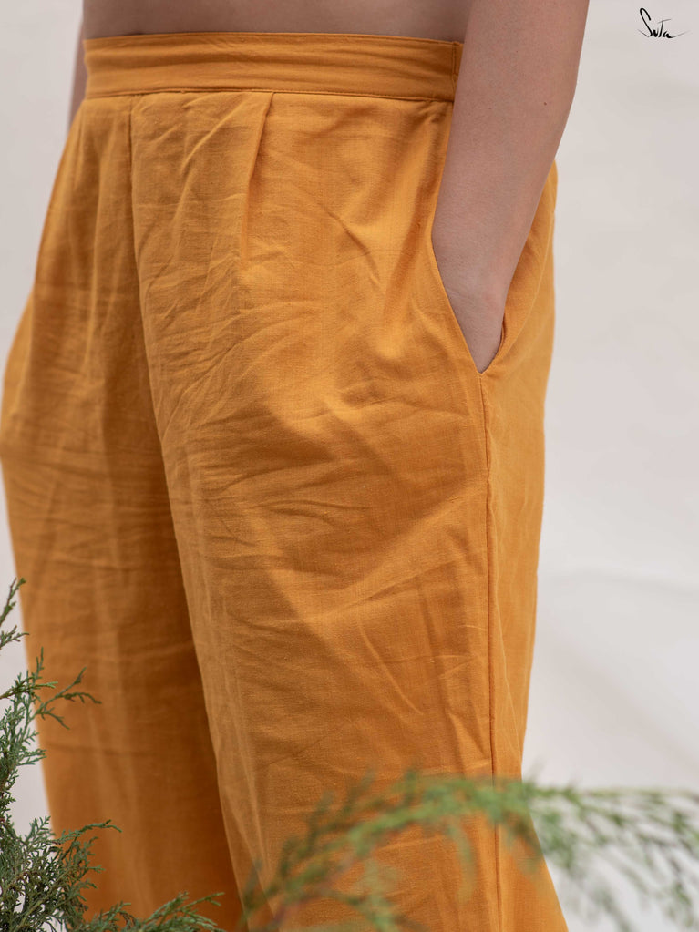 These mustard cotton pants are made for ease - breathable, comfortable, and easy to move in. The elasticated waist keeps the fit relaxed, while the scalloped hem adds a soft handcrafted detail. Finished with pockets on both sides, they’re practical enough for everyday wear.