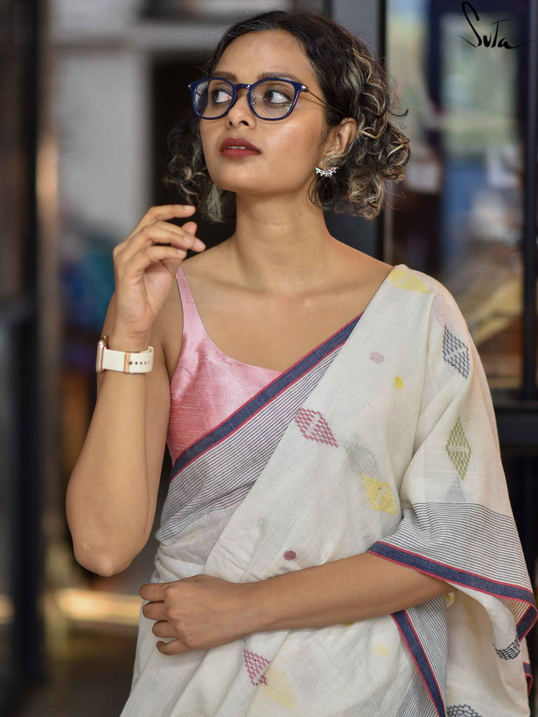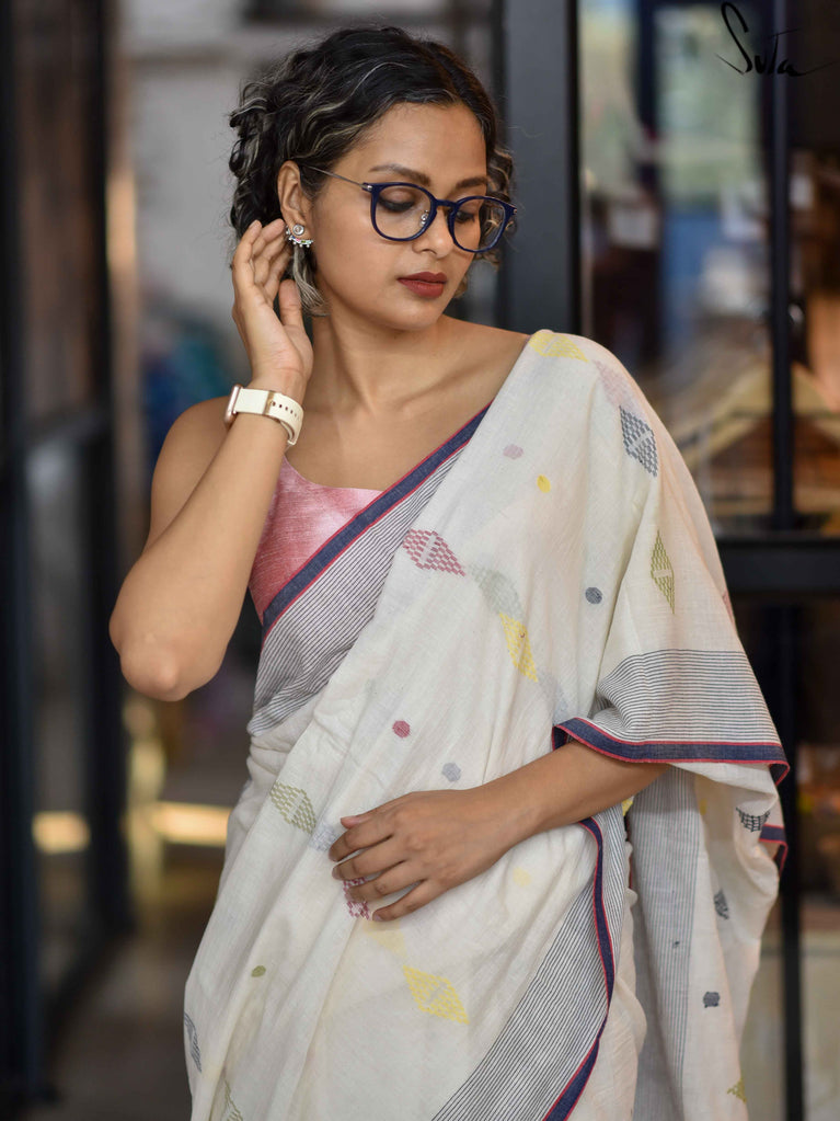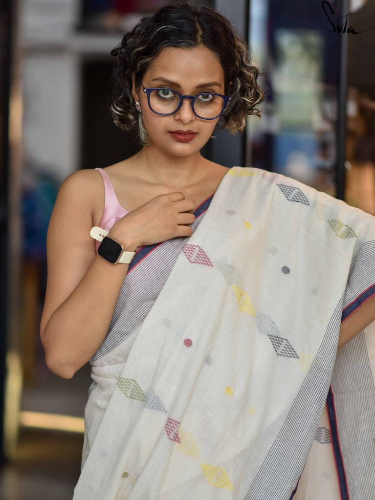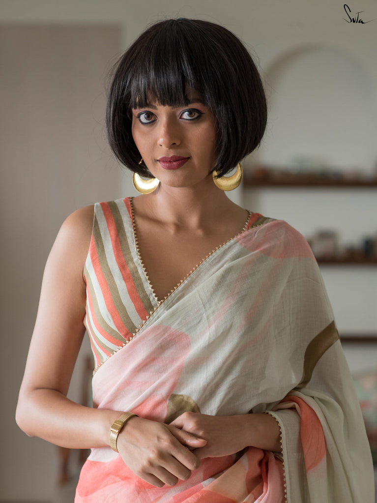 Note: Our mul sarees are slightly transparent, it’s the nature of the fabric and part of its soft, airy charm.