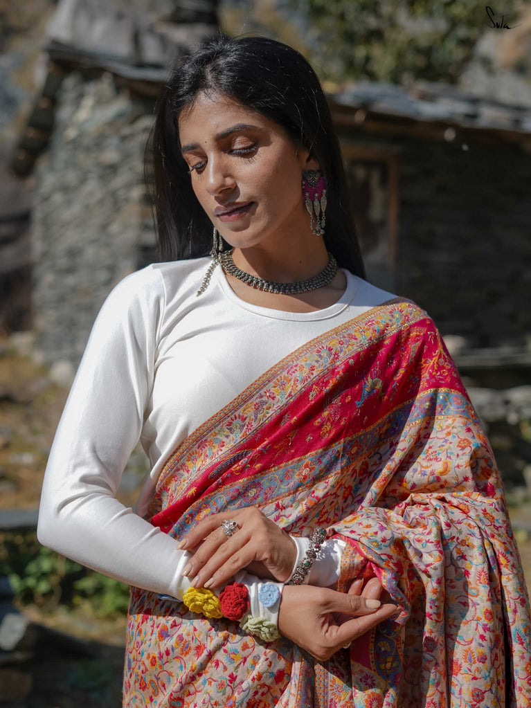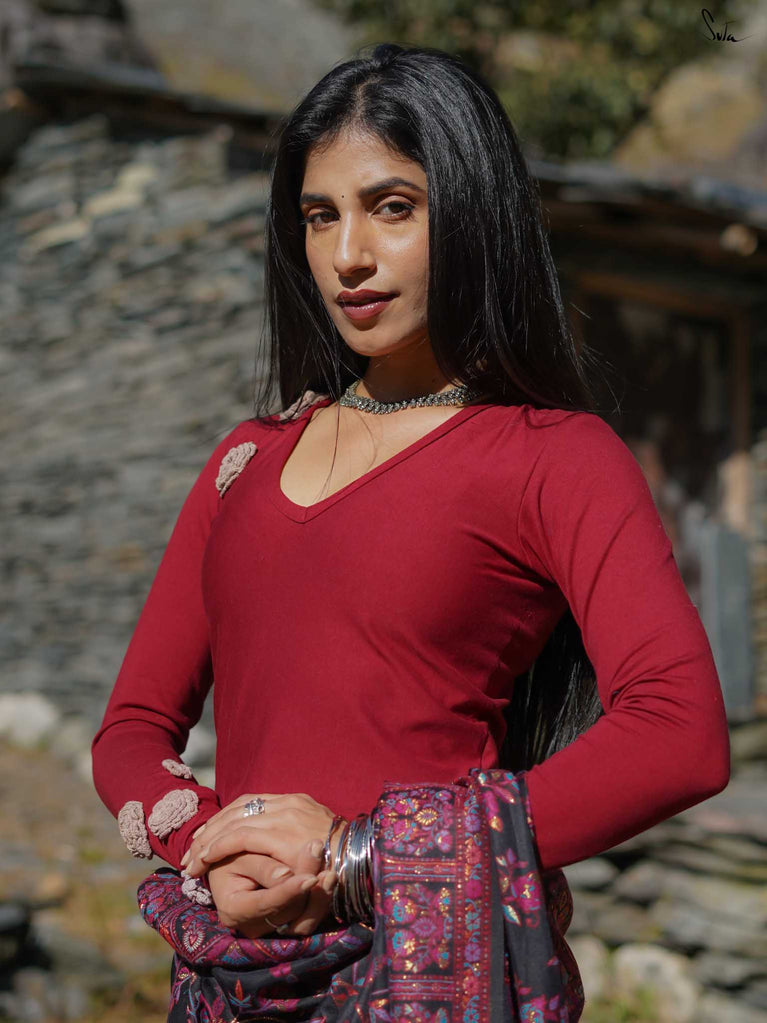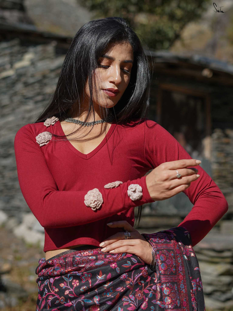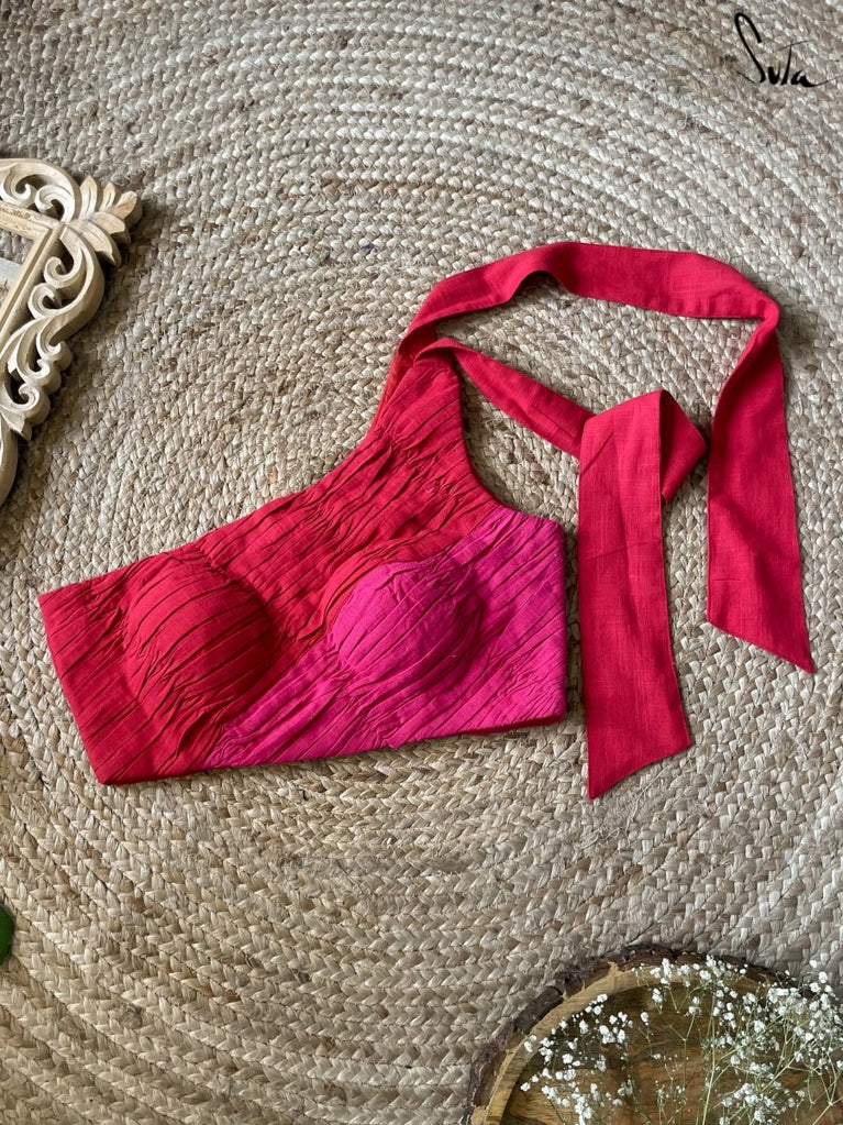 This gorgeous cotton red and pink blouse is the perfect accompaniment for those who never hesitate to seek their hearts’ true desires.