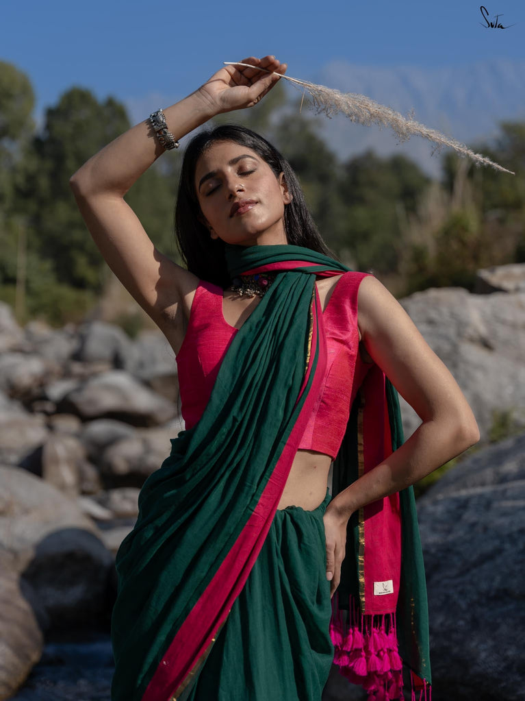 Note: The model is wearing a saree called Pine Pashm