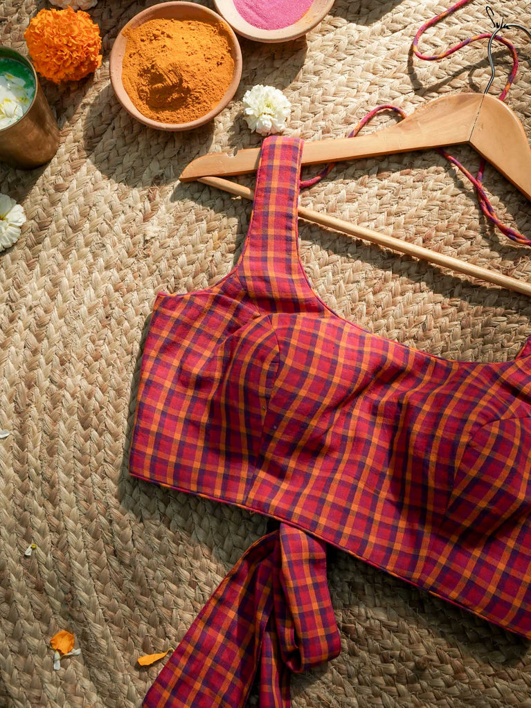 Playful yet polished, this multicolored checkered sleeveless blouse is a cheerful nod to the carefree spirit of Holi. With a chic back knot opening it fits like a glove, giving you comfort and confidence as you dance through the colors of the season. The cotton design ensures a perfect fit that provides comfort without compromising style.