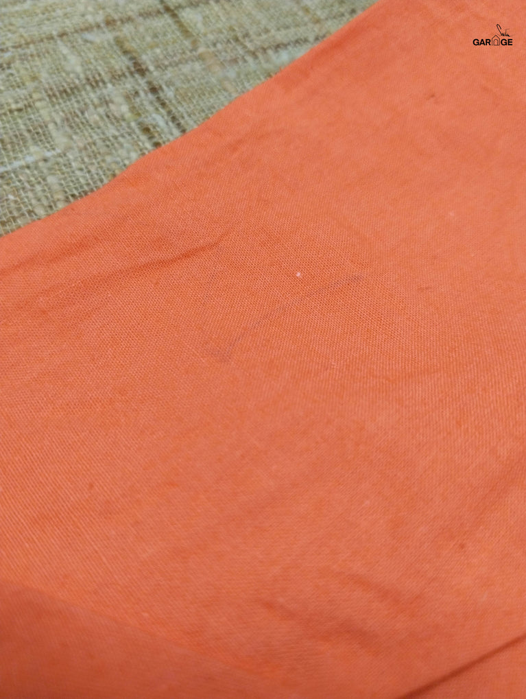 Blush is a sophisticated Orange blouse from the Rangrez collection, crafted to blend heritage artistry with modern elegance. Made in soft cotton muslin, it features traditional Bandhani tie-dye patterns and 1/4th sleeves with a classic collar neck. The gold lace detailing on the sleeves and neckline adds a subtle festive shimmer, making Blush a perfect companion for Rangrez sarees or as a standalone statement for celebrations.